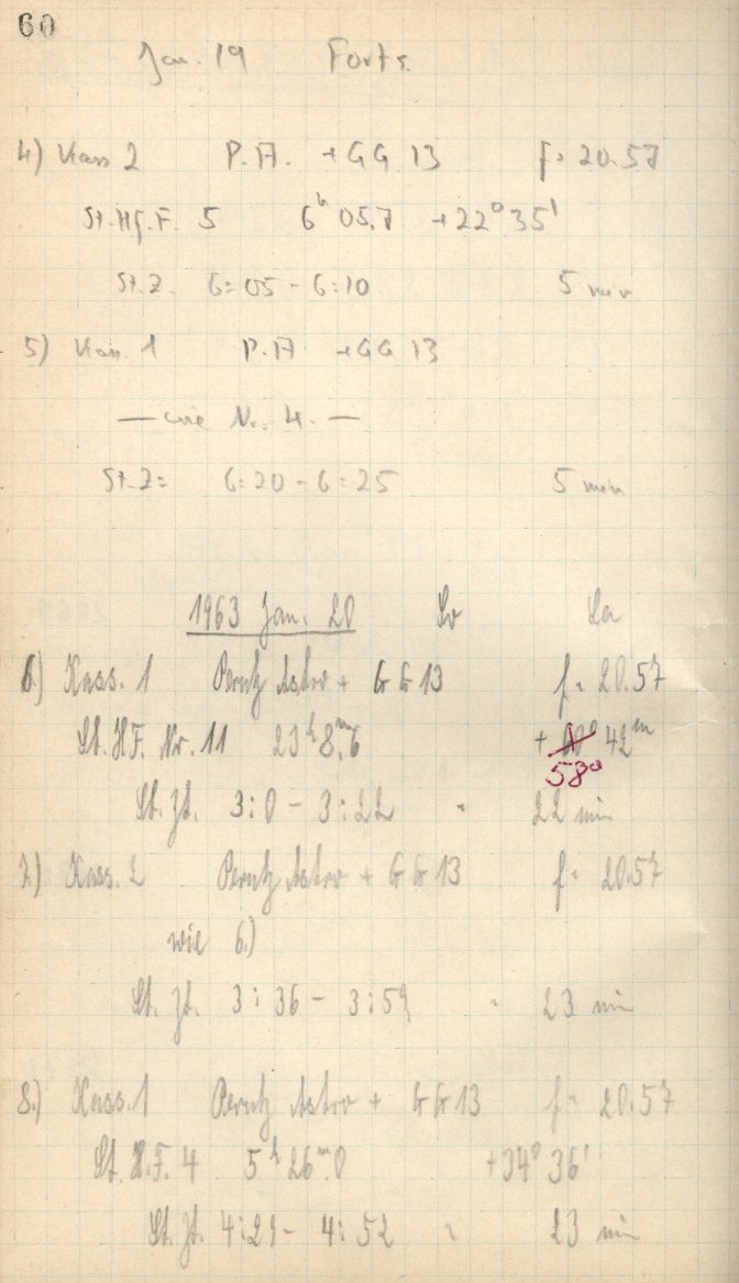 Zum Datum gehörende Seiten des Beobachtungsbuches