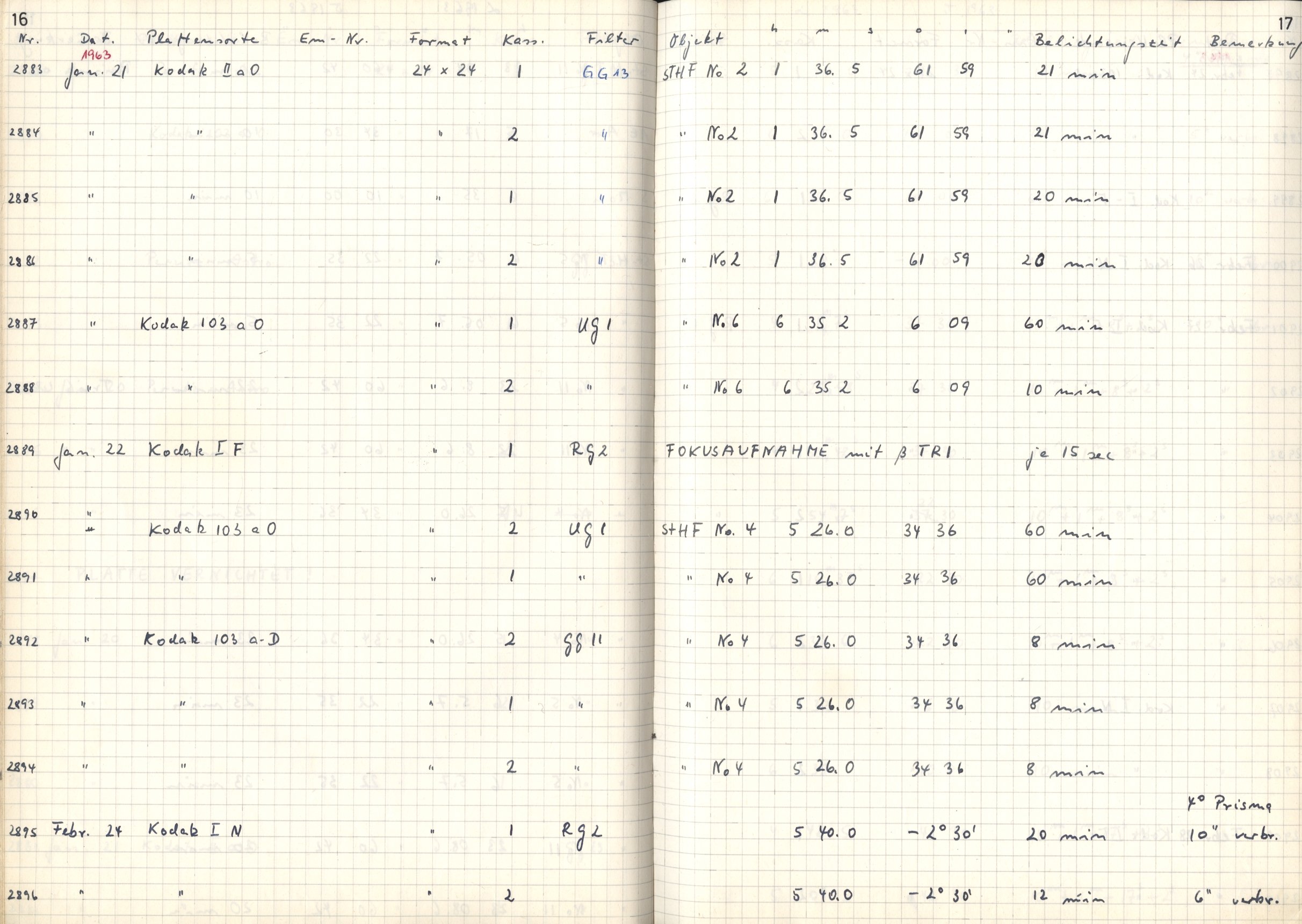 Zum Datum gehörende Seiten des Beobachtungsbuches