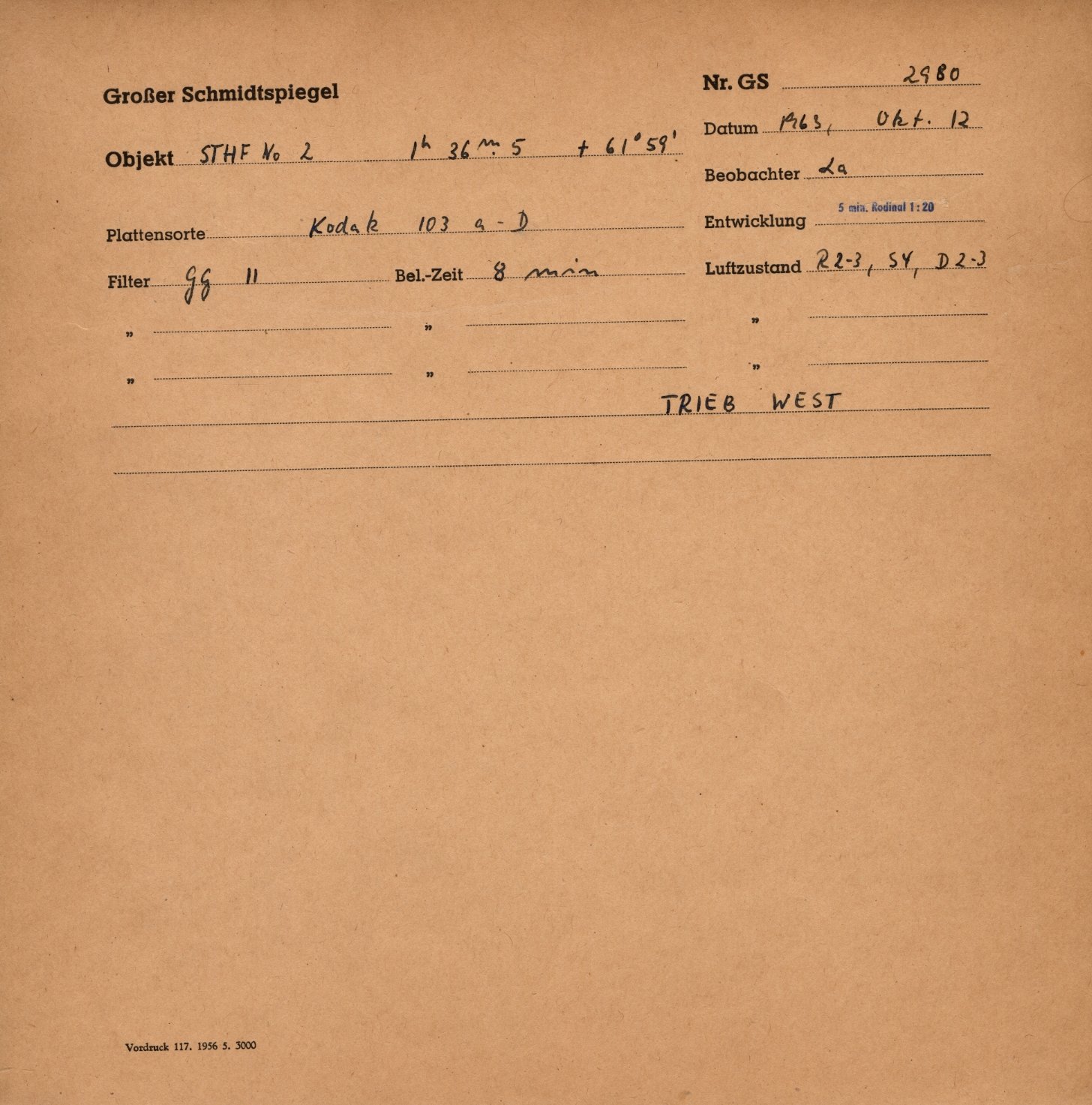 Großer-Schmidt-Spiegel: GS02980 -- Sternhaufenfeld Nr.2 -- 01:36.5 +61:59.0
