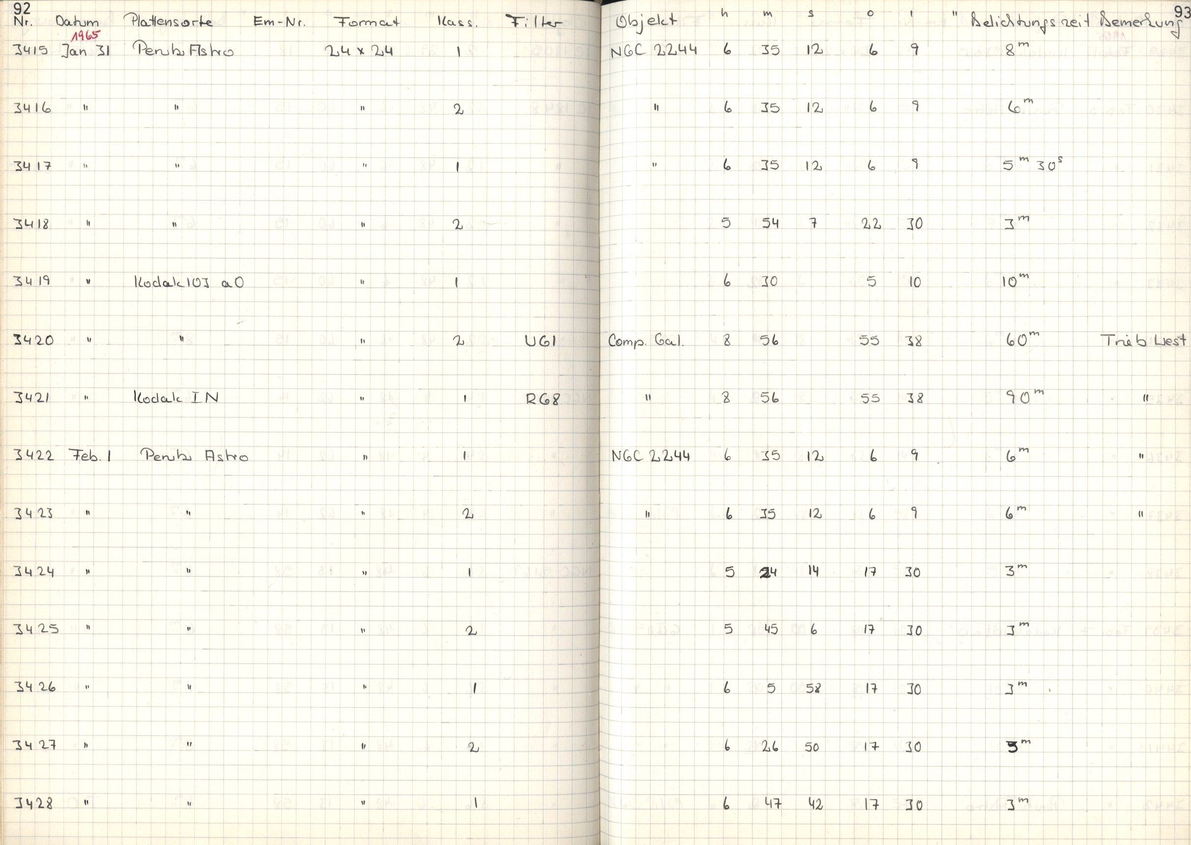 Zum Datum gehörende Seiten des Beobachtungsbuches