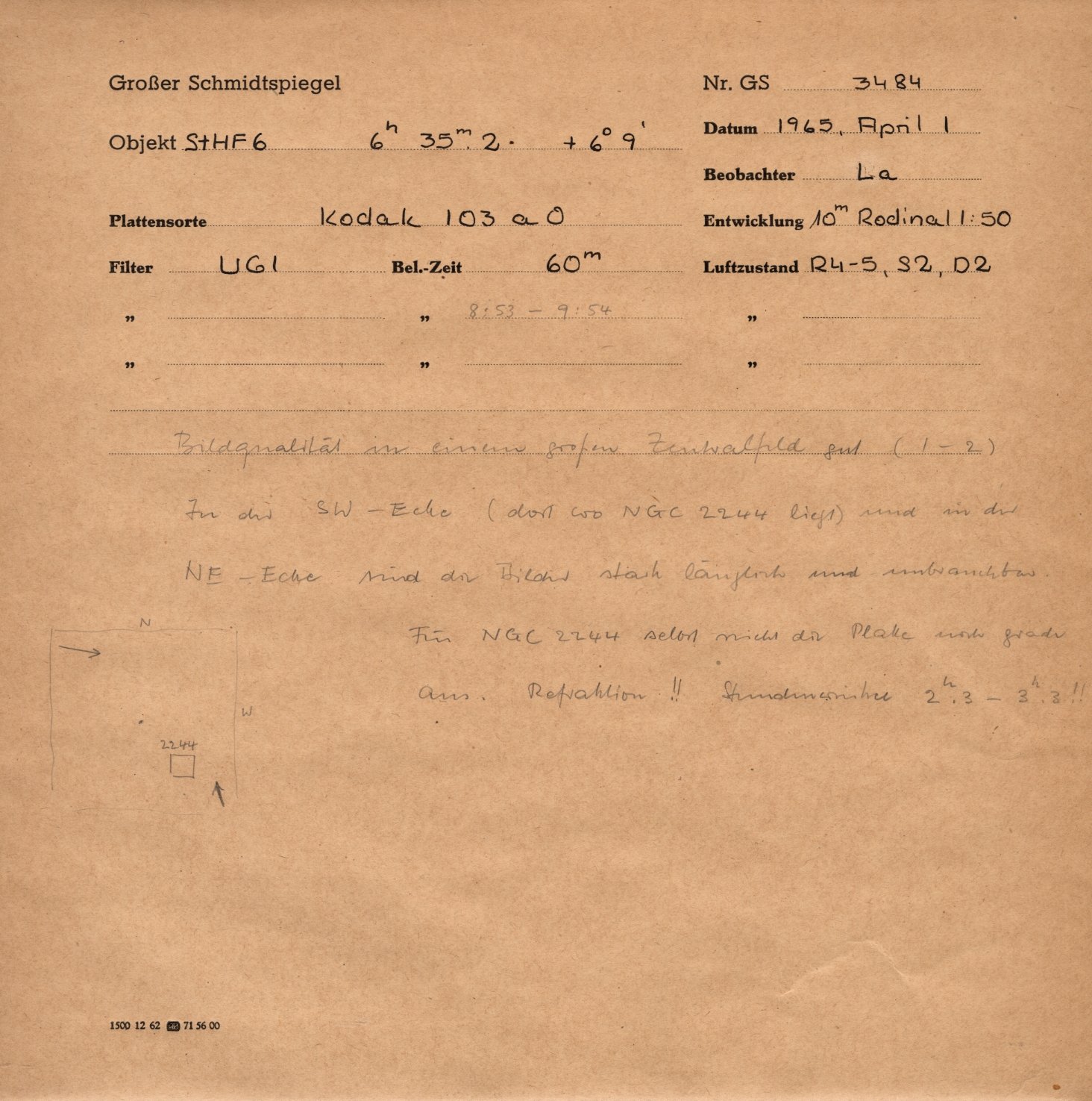 Großer-Schmidt-Spiegel: GS03484 -- Sternhaufenfeld Nr.6 -- 06:35.2 +06:09.0