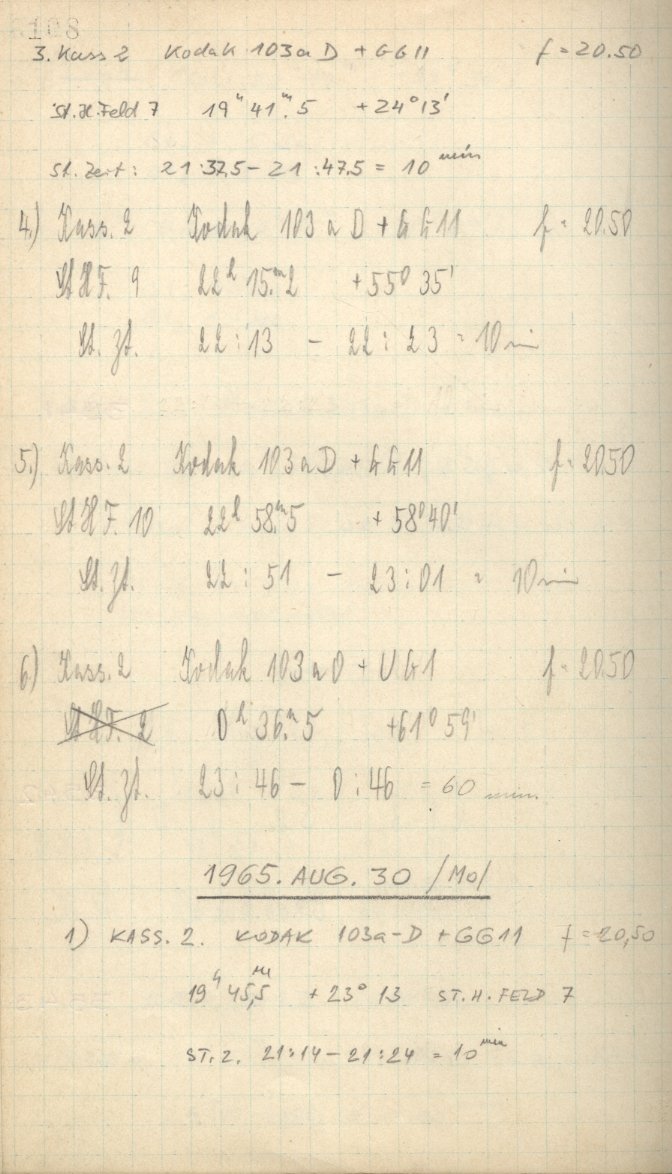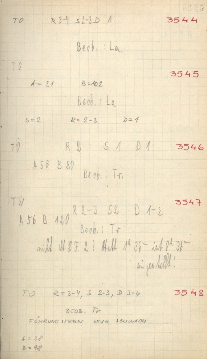 Zum Datum gehörende Seiten des Beobachtungsbuches