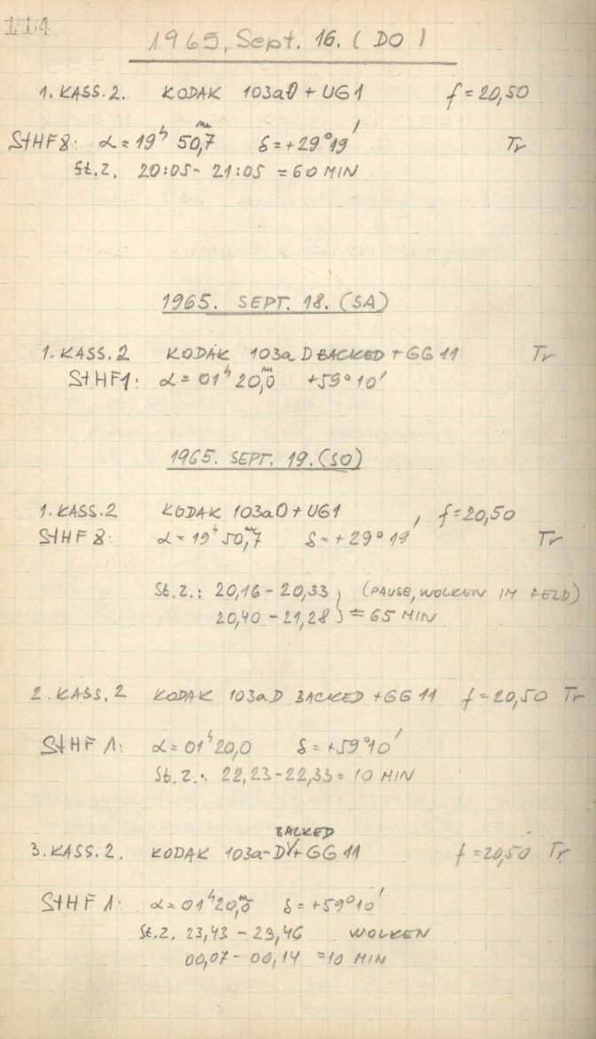 Zum Datum gehörende Seiten des Beobachtungsbuches