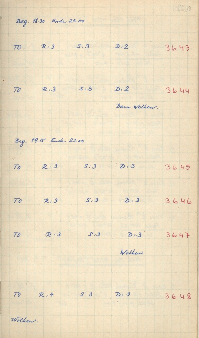 Zum Datum gehörende Seiten des Beobachtungsbuches