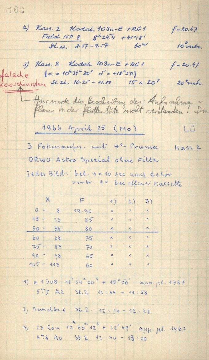 Norden = links, Osten = unten, falls nicht auf der Fotoplatte anders beschriftet