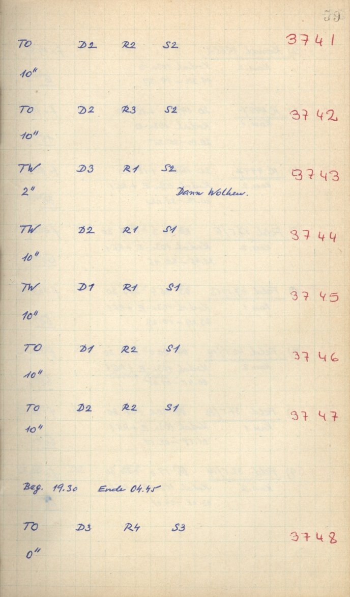 Zum Datum gehörende Seiten des Beobachtungsbuches