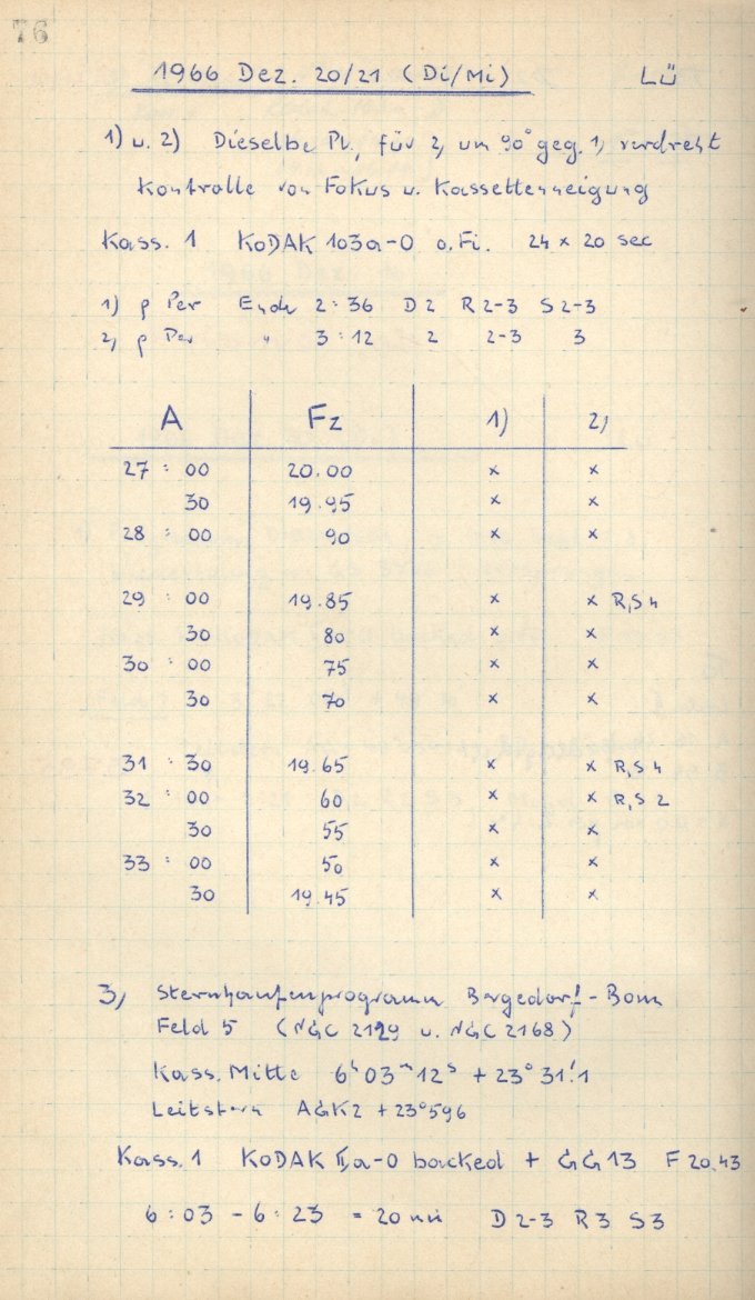 Zum Datum gehörende Seiten des Beobachtungsbuches