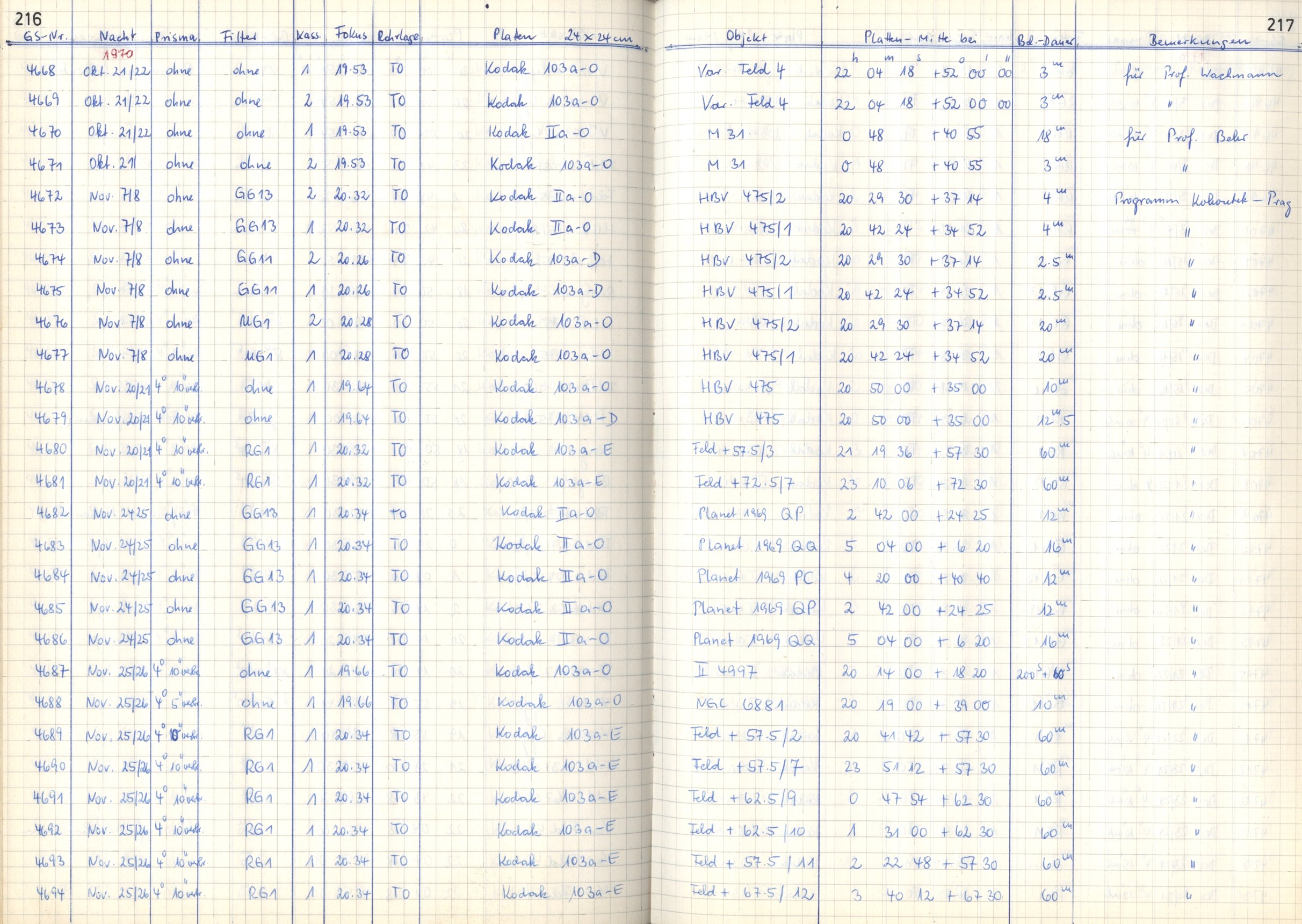 Zum Datum gehörende Seiten des Beobachtungsbuches