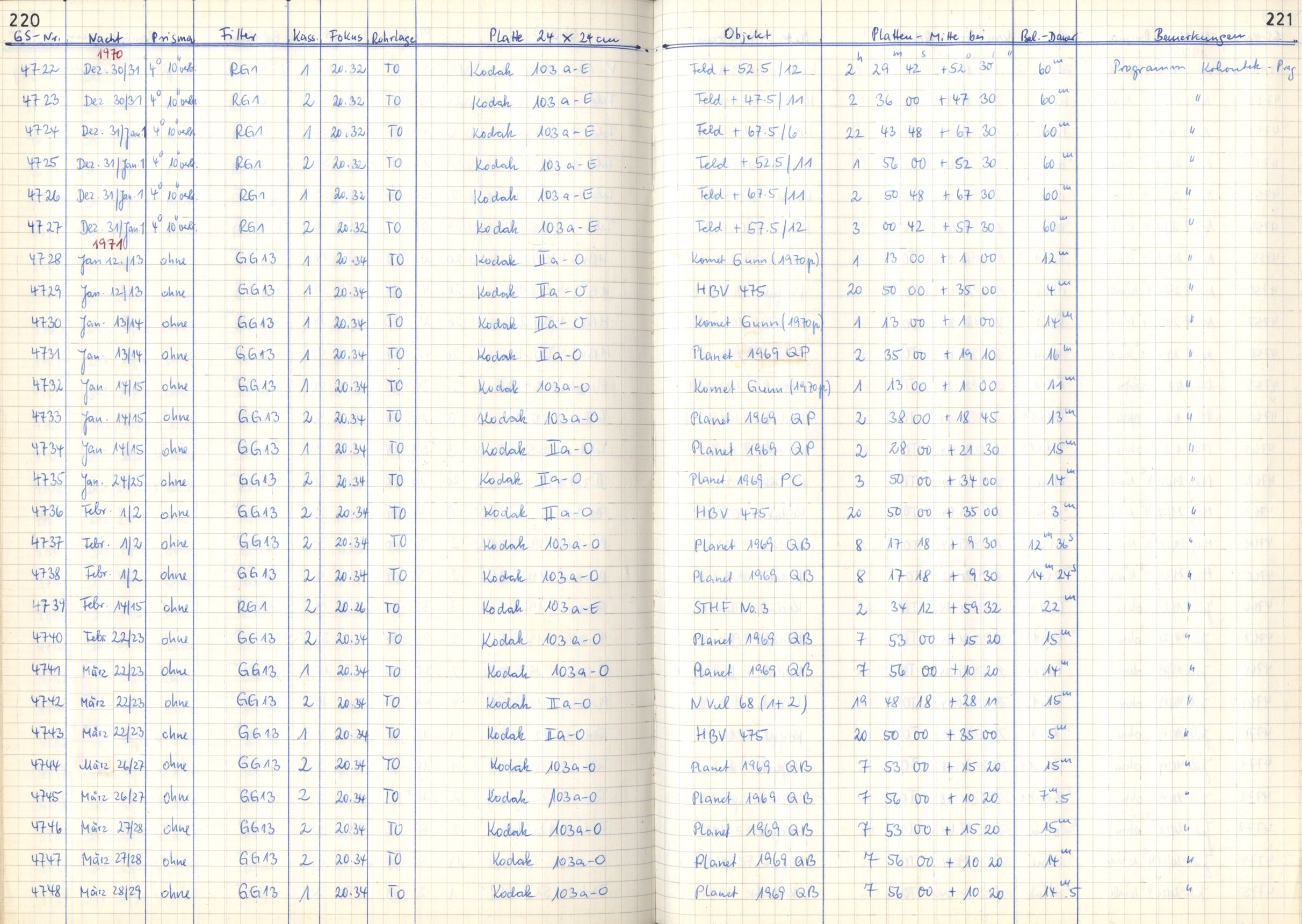Zum Datum gehörende Seiten des Beobachtungsbuches
