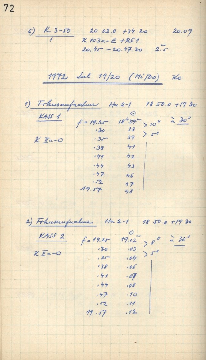 Zum Datum gehörende Seiten des Beobachtungsbuches