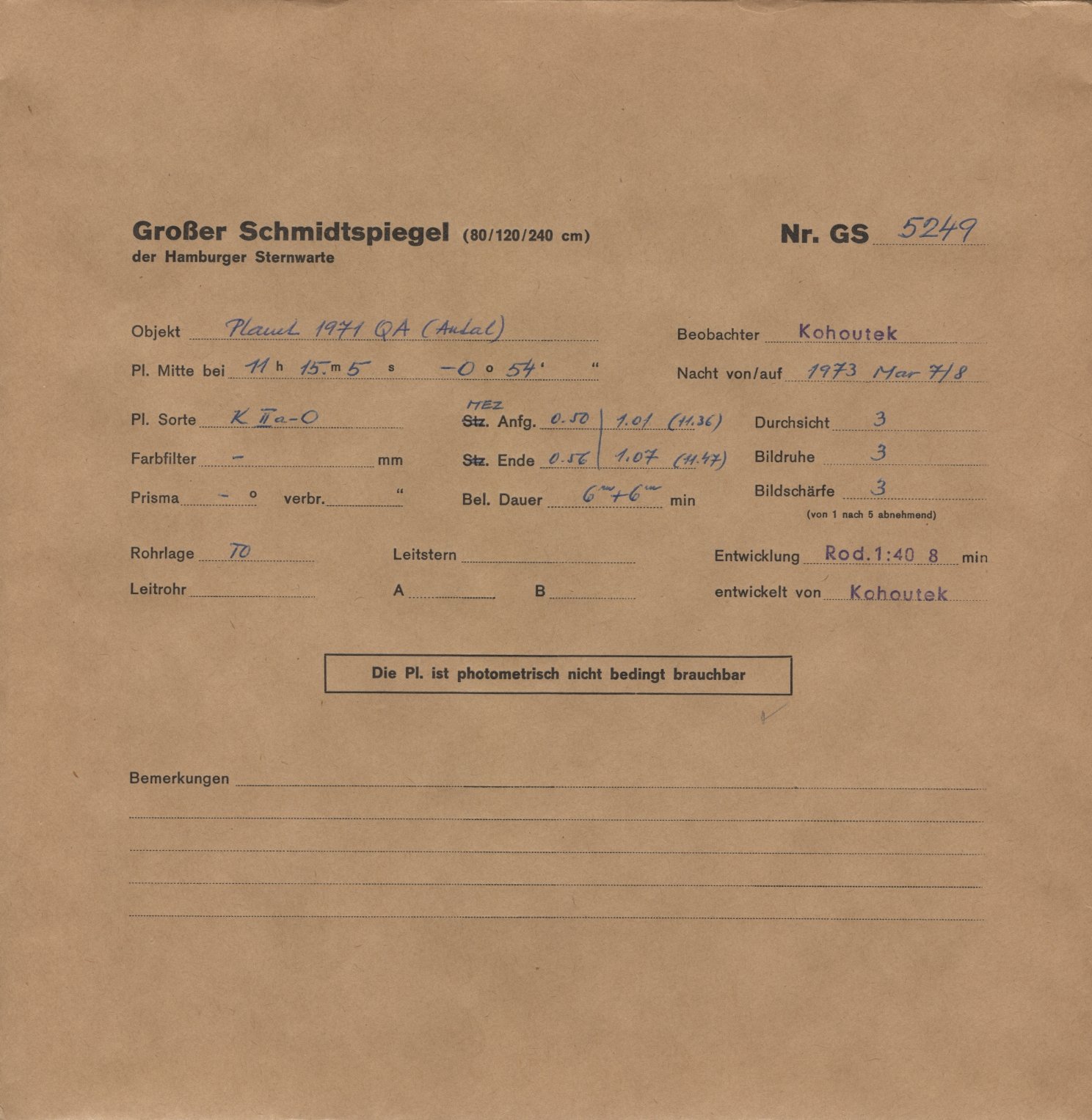 Großer-Schmidt-Spiegel: GS05249 -- Planet 1971 QA (Antal) -- 11:15.5 -00:54.0