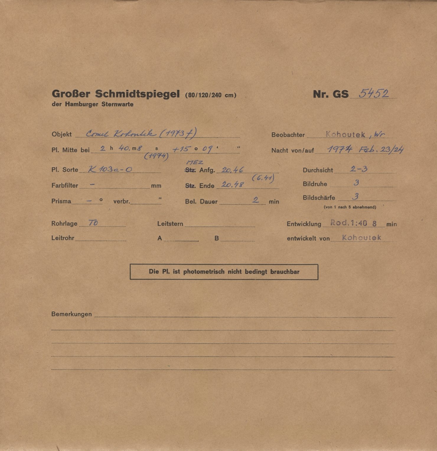 Großer-Schmidt-Spiegel: GS05452 -- Komet Kohoutek (1973f) -- 02:40.8 +15:09.0