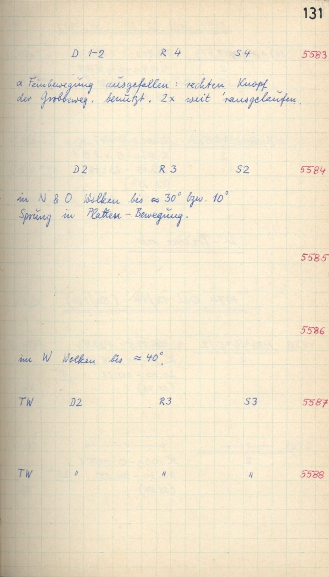 Zum Datum gehörende Seiten des Beobachtungsbuches