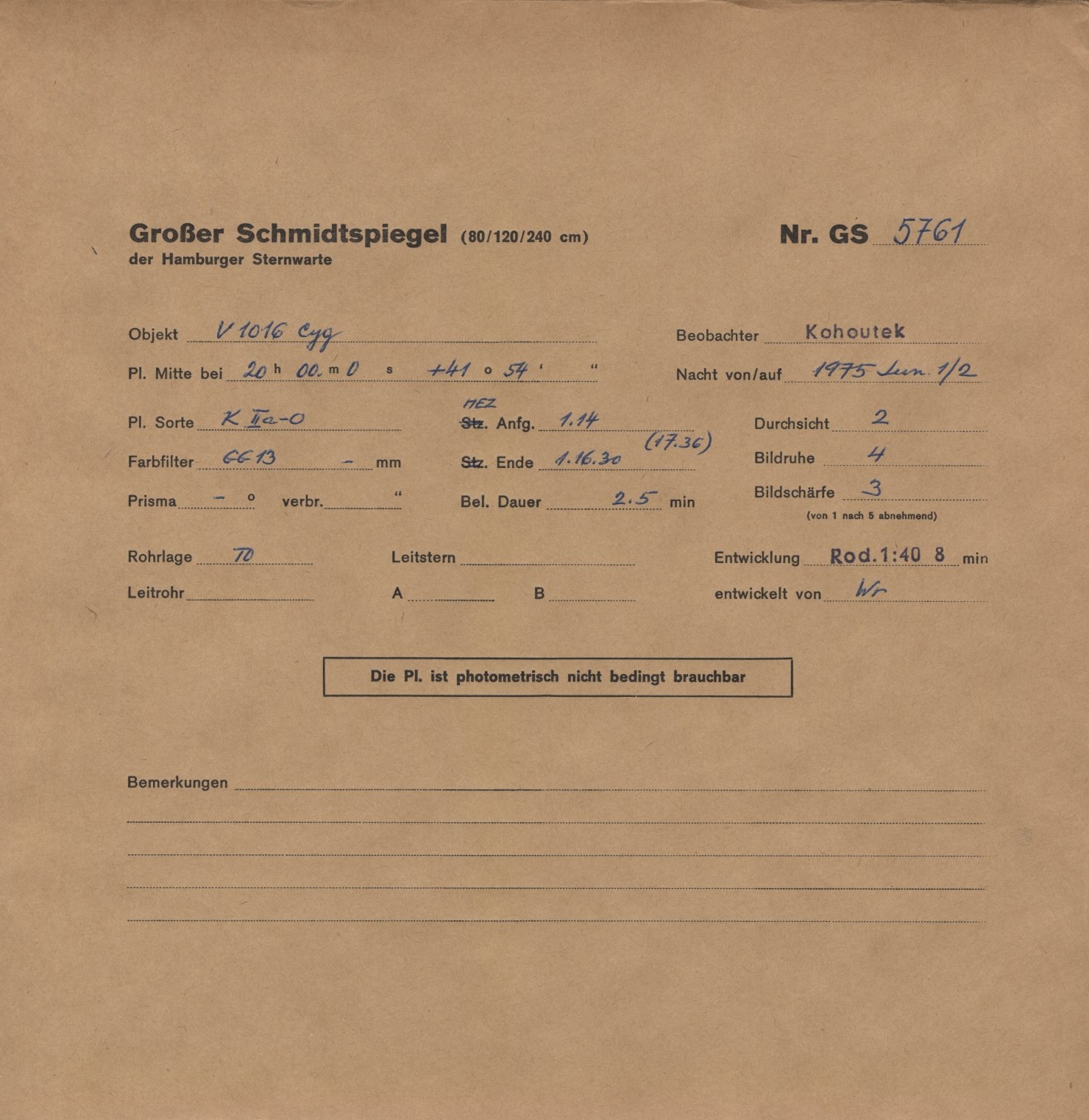 Großer-Schmidt-Spiegel: GS05761 -- V 1016 Cyg -- 20:00.0 +41:54.0