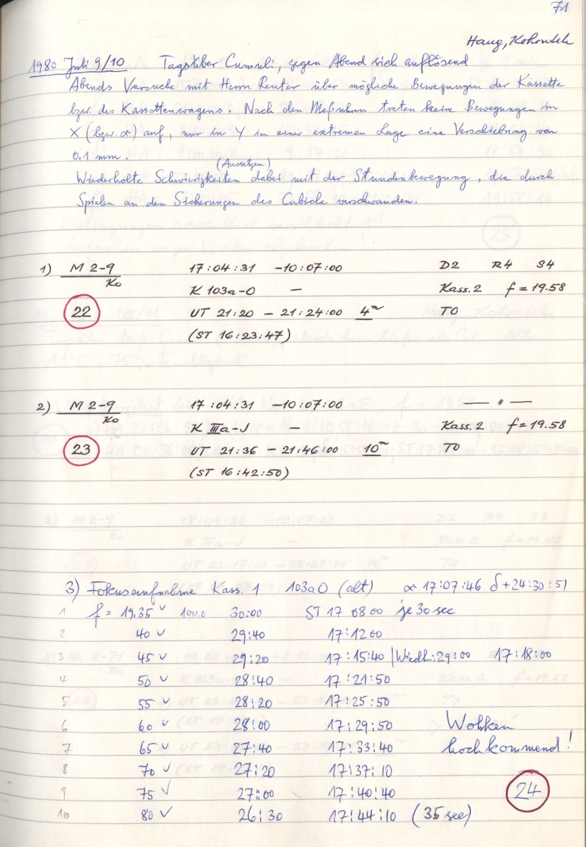 Zum Datum gehörende Seiten des Beobachtungsbuches