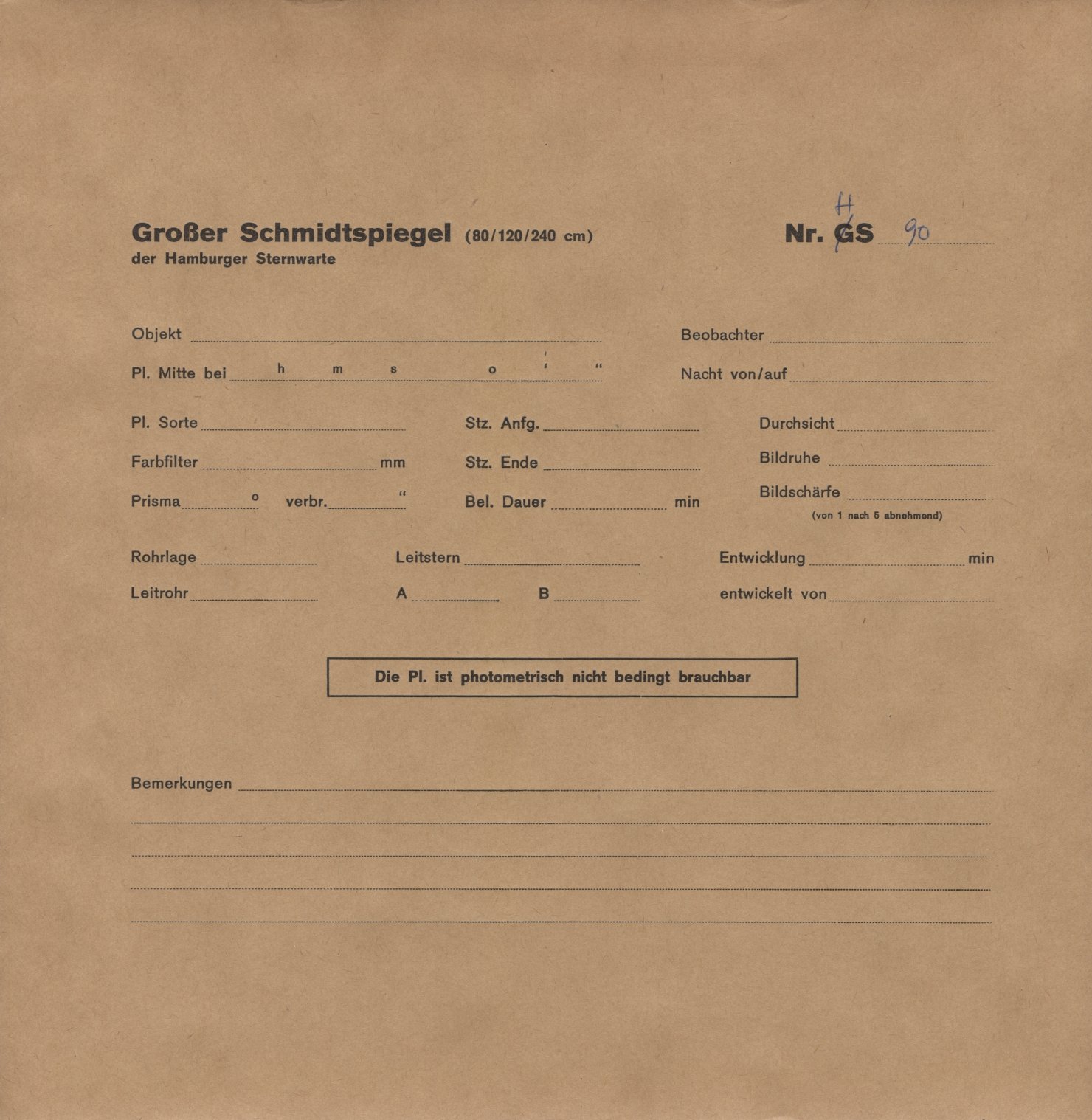 Norden = links, Osten = unten, falls nicht auf der Fotoplatte anders beschriftet