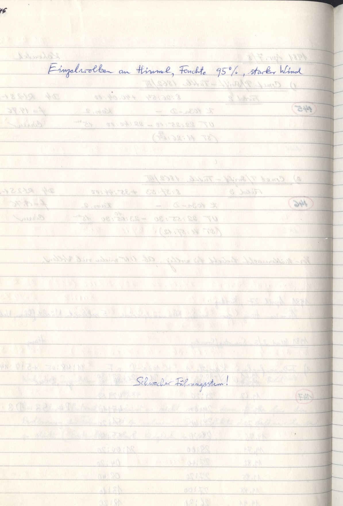 Zum Datum gehörende Seiten des Beobachtungsbuches