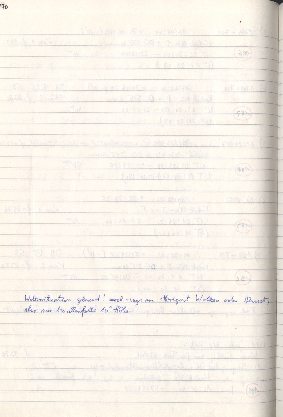 Zum Datum gehörende Seiten des Beobachtungsbuches