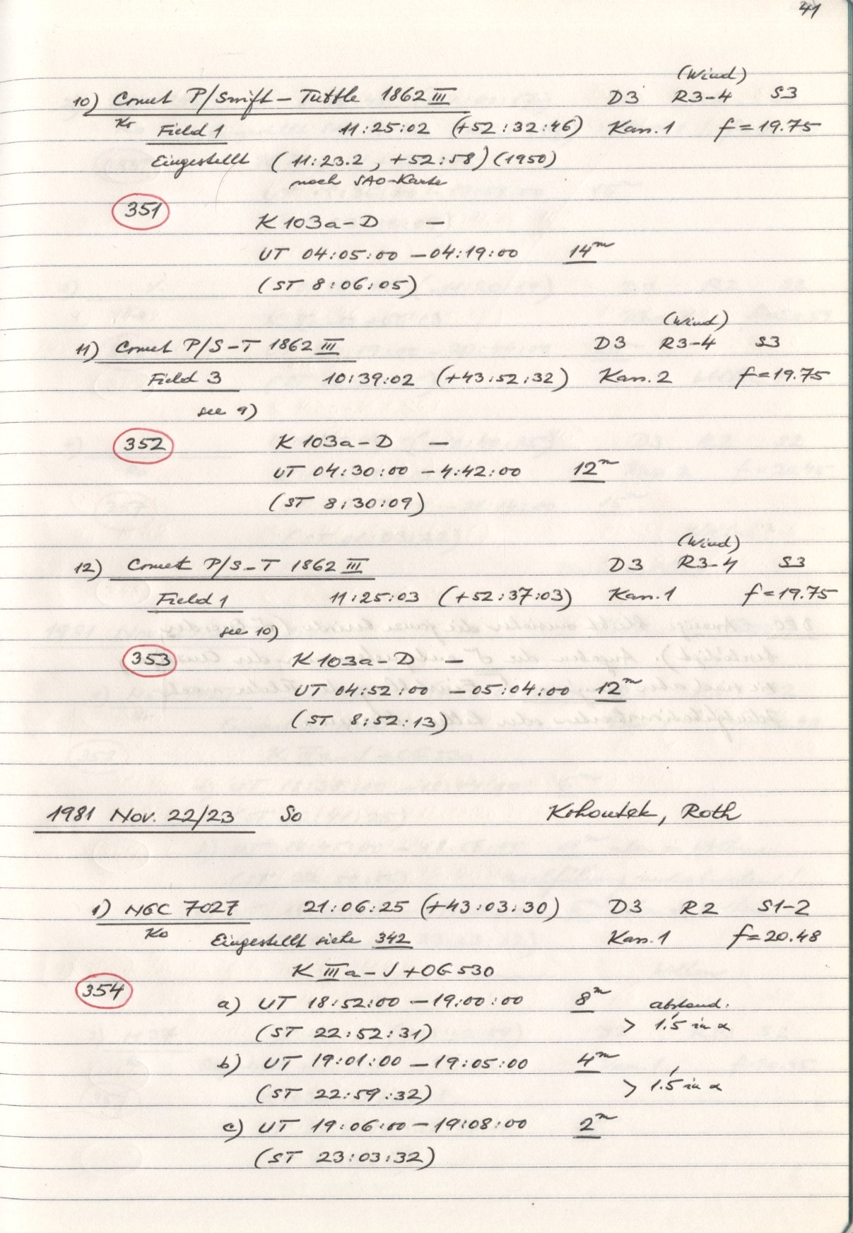 Zum Datum gehörende Seiten des Beobachtungsbuches