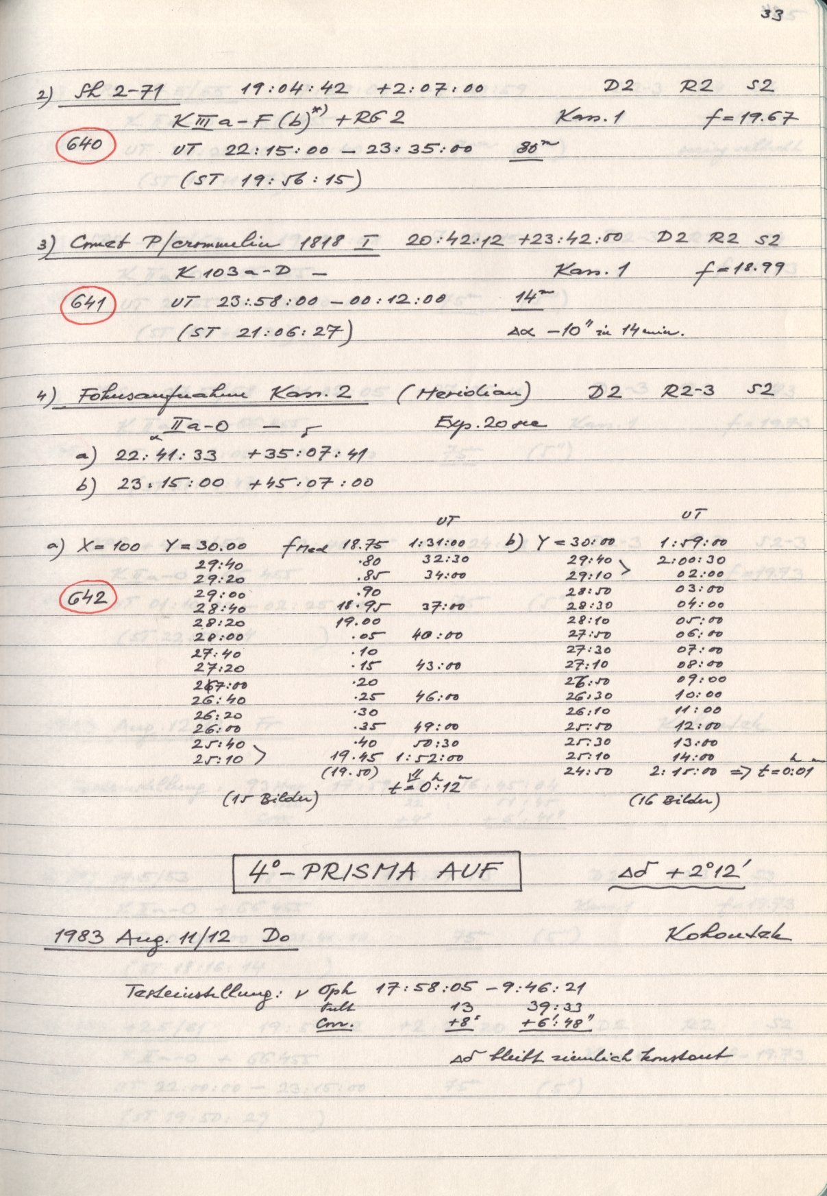 Zum Datum gehörende Seiten des Beobachtungsbuches
