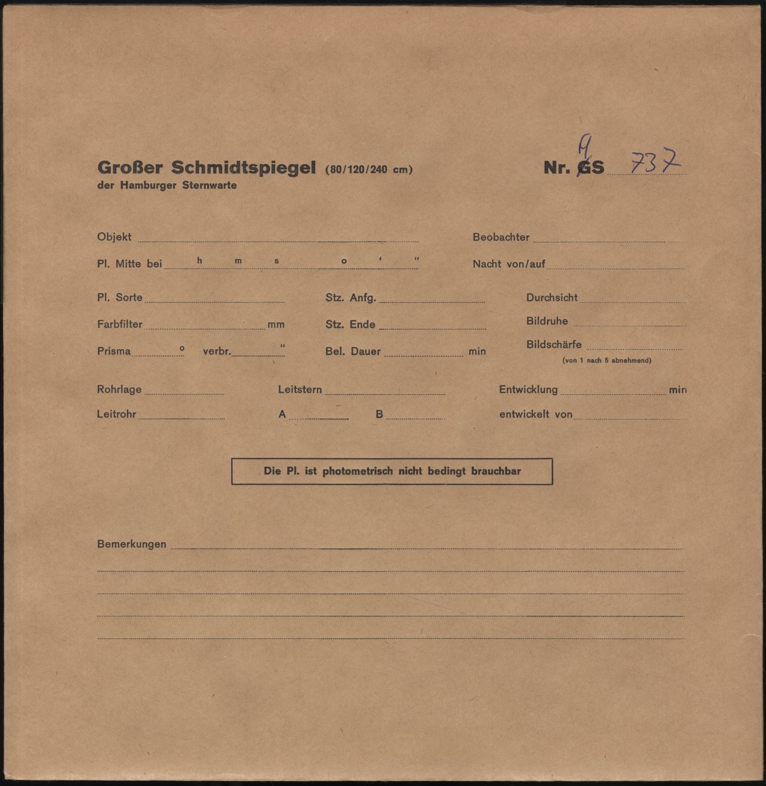 The material in this archive can be used for scientific purposes free of charge. Any other usage requires the written permission of the director of Hamburger Sternwarte.