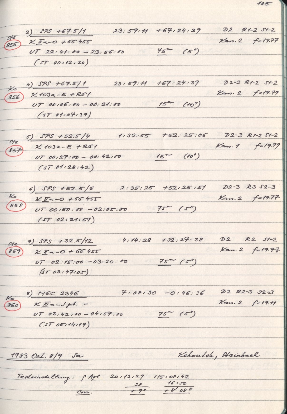 Zum Datum gehörende Seiten des Beobachtungsbuches