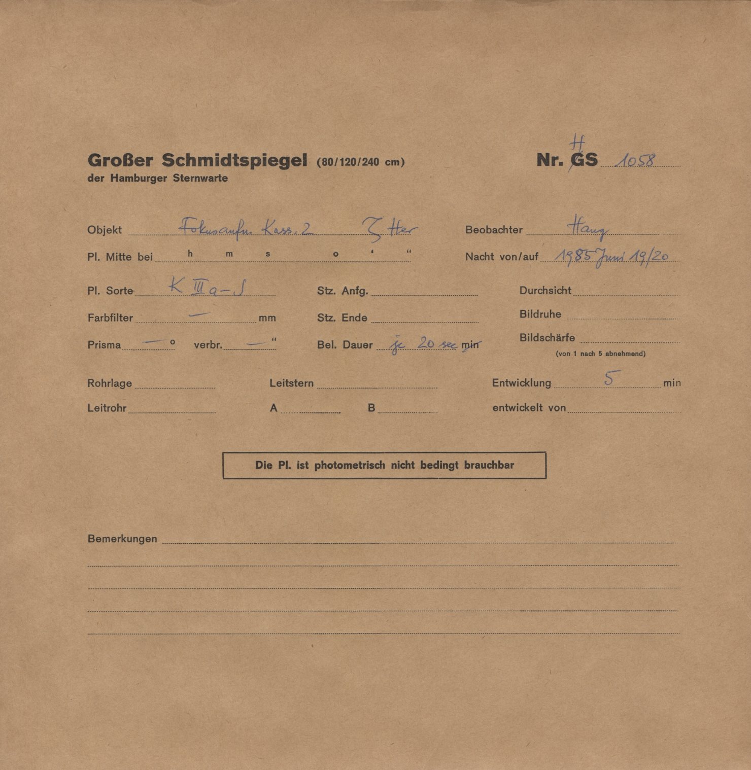 The material in this archive can be used for scientific purposes free of charge. Any other usage requires the written permission of the director of Hamburger Sternwarte.