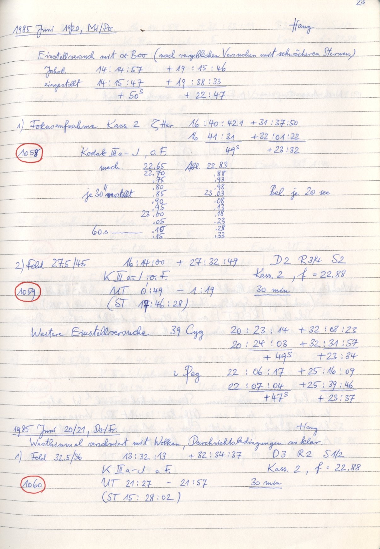 Zum Datum gehörende Seiten des Beobachtungsbuches