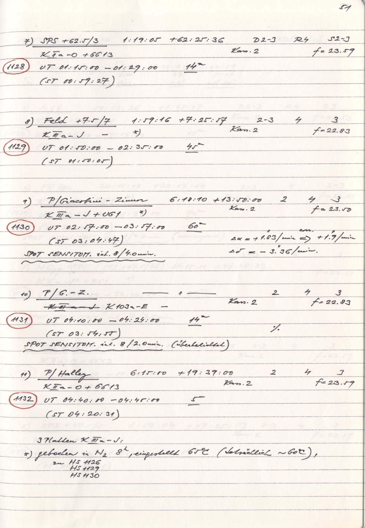 Zum Datum gehörende Seiten des Beobachtungsbuches