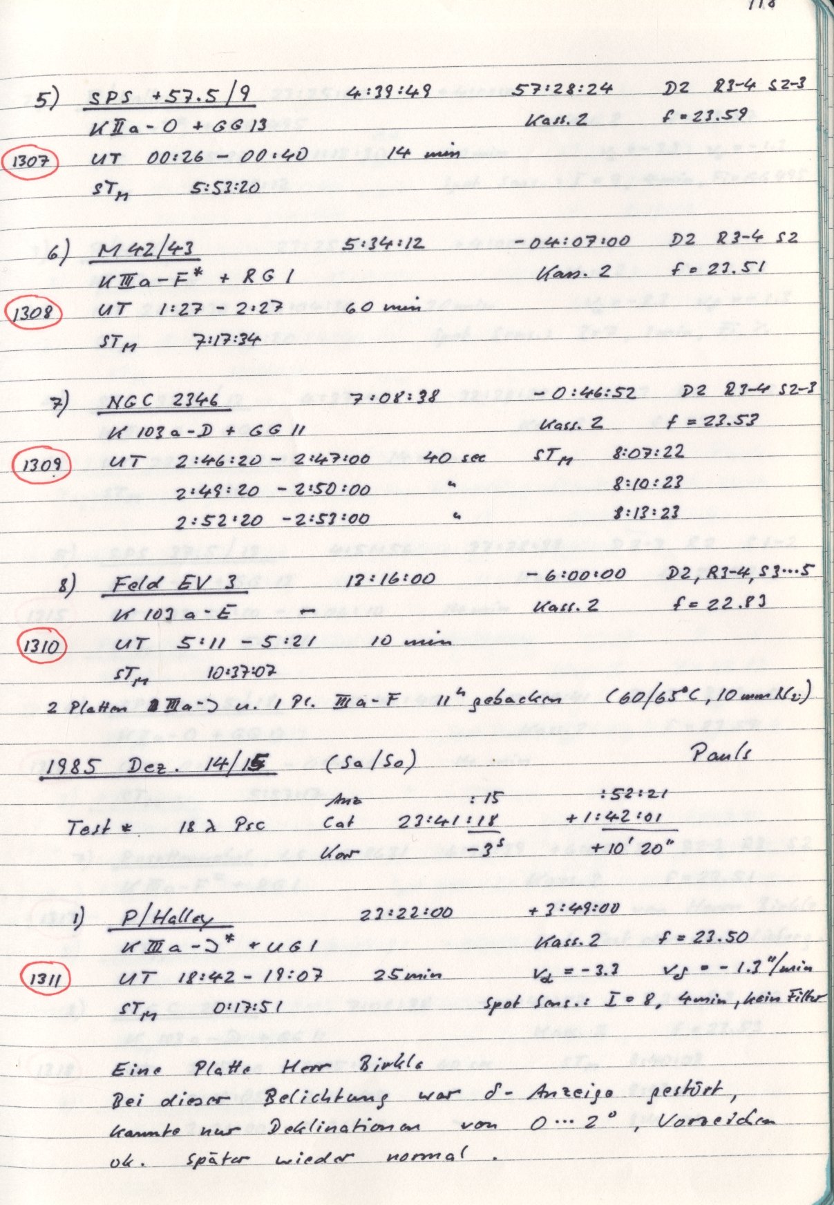 Zum Datum gehörende Seiten des Beobachtungsbuches