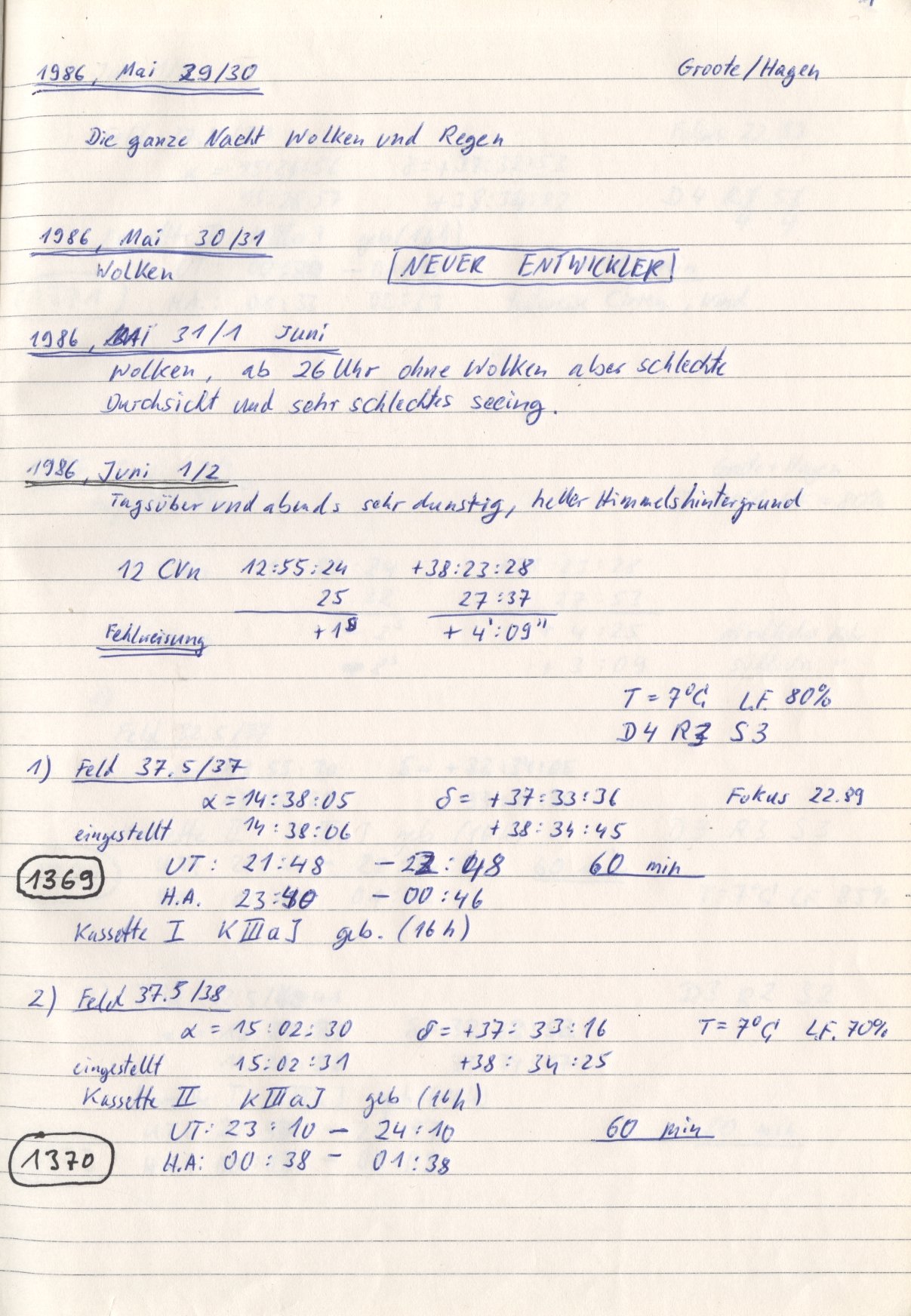 Zum Datum gehörende Seiten des Beobachtungsbuches