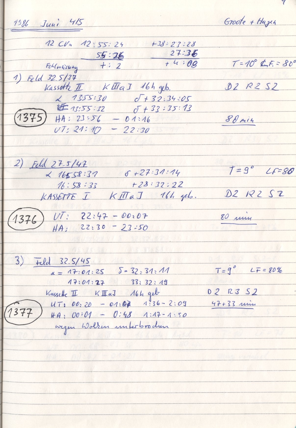 Zum Datum gehörende Seiten des Beobachtungsbuches