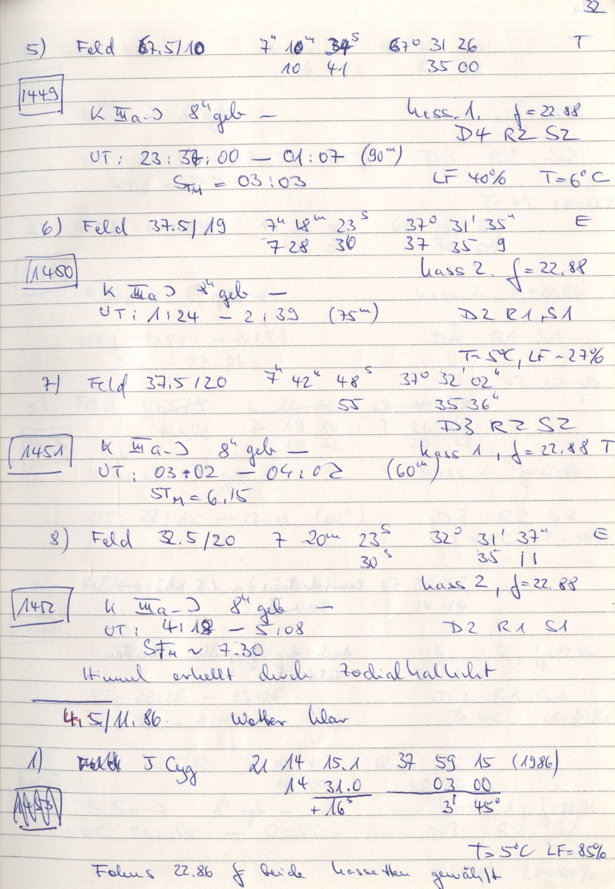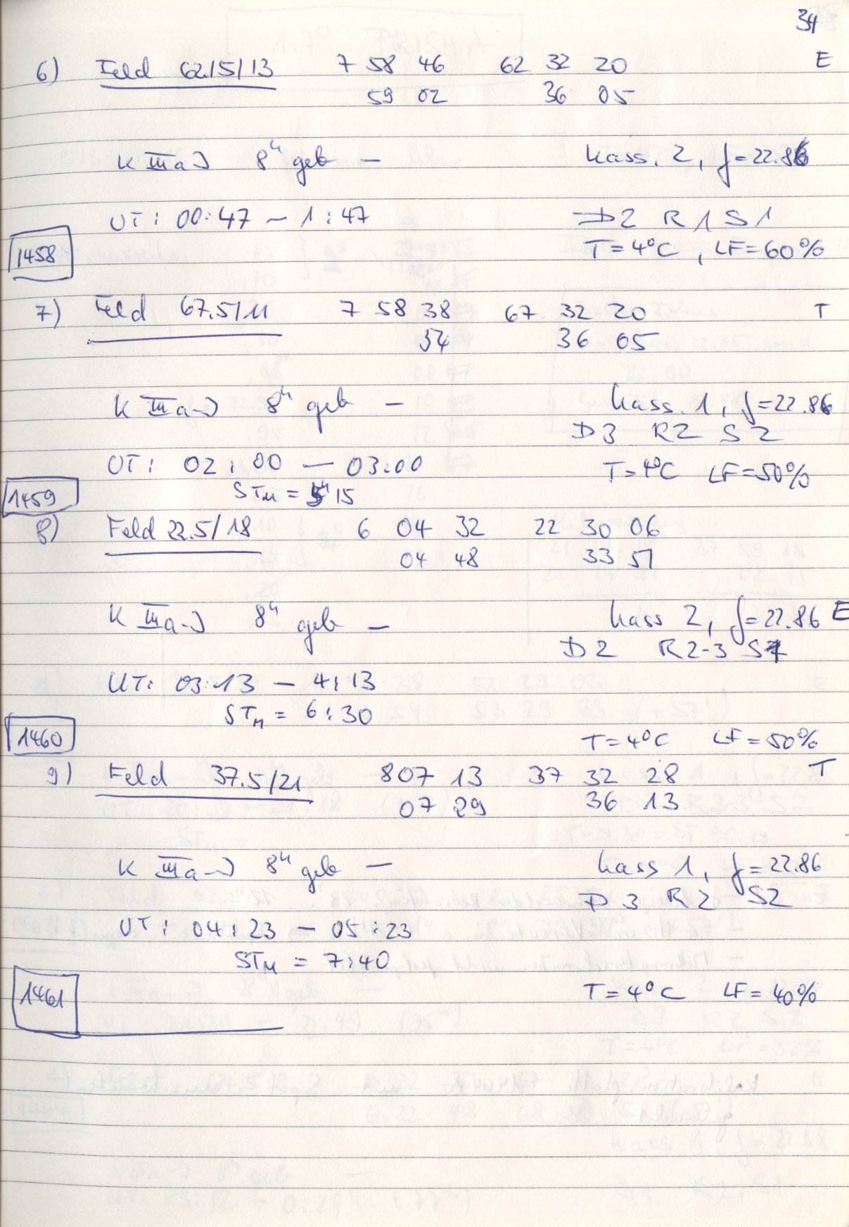 Zum Datum gehörende Seiten des Beobachtungsbuches