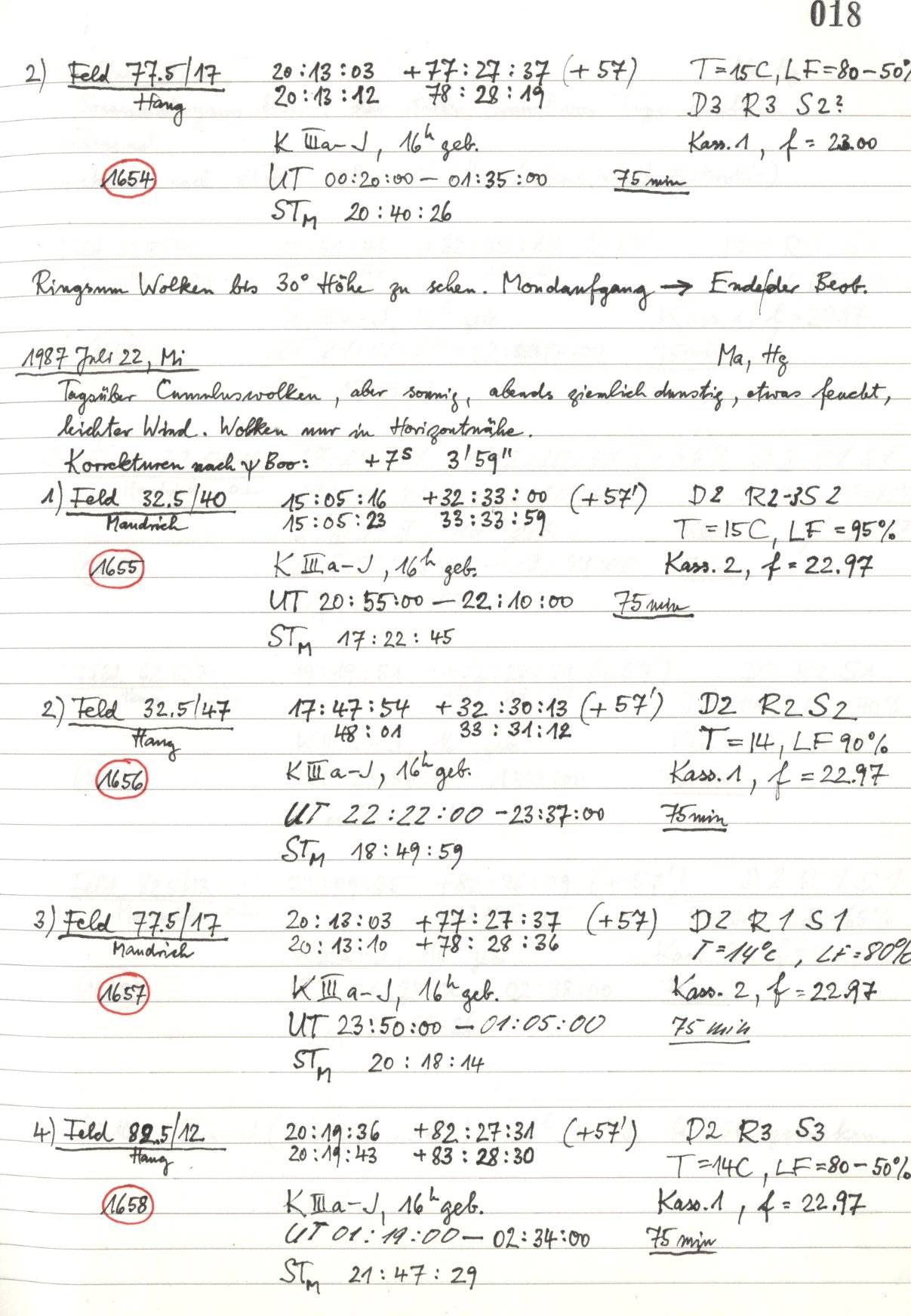 Zum Datum gehörende Seiten des Beobachtungsbuches