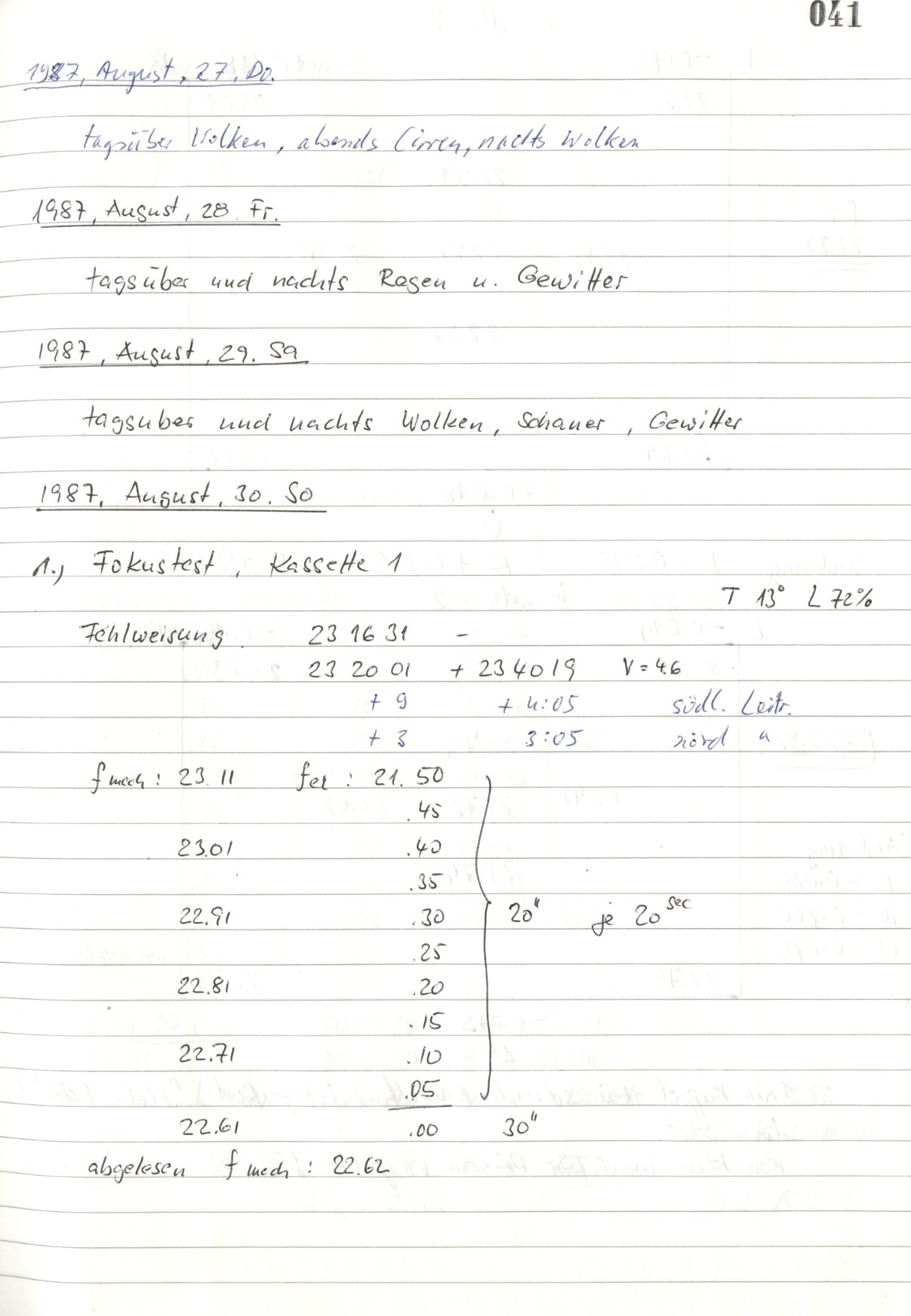 Zum Datum gehörende Seiten des Beobachtungsbuches