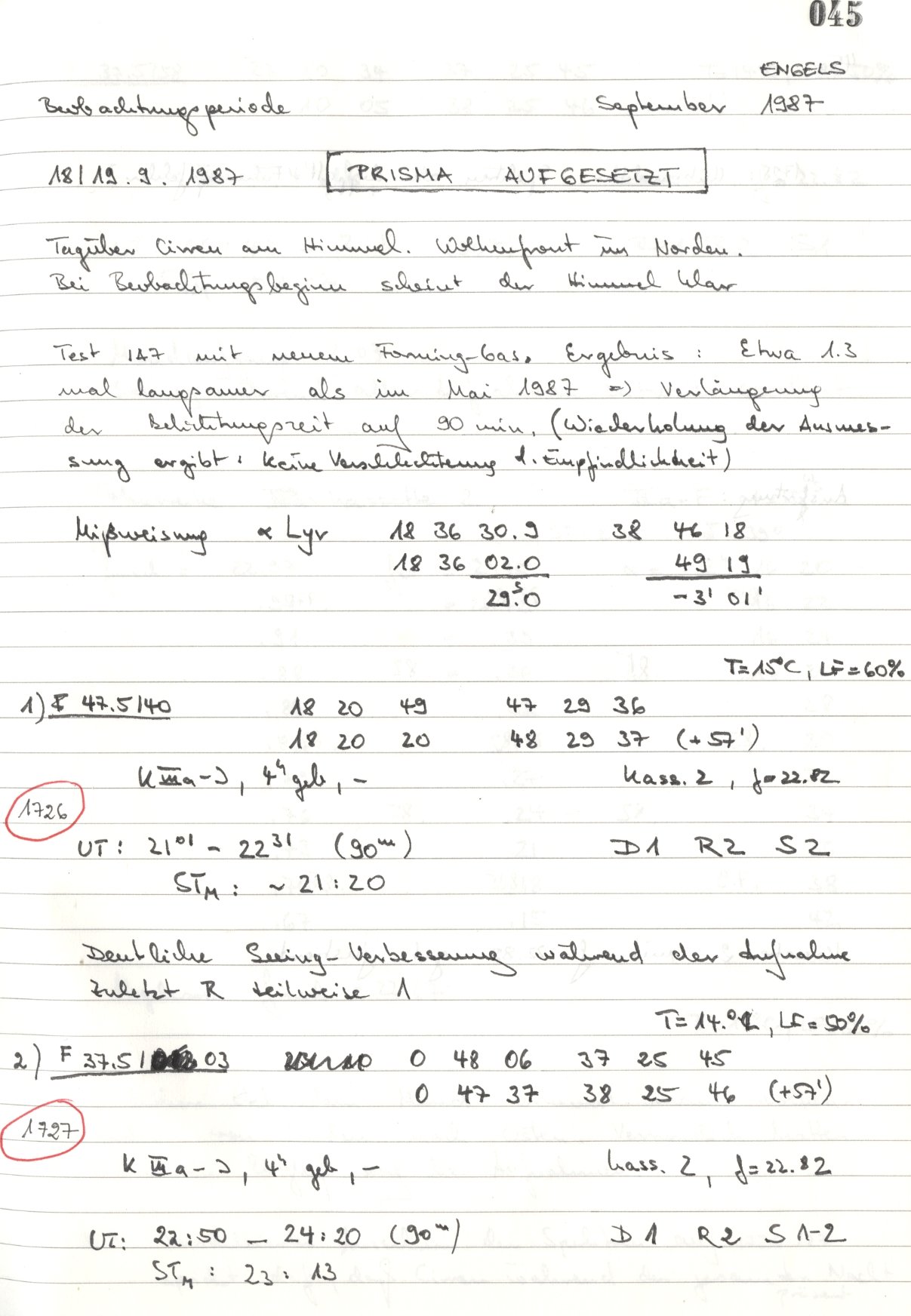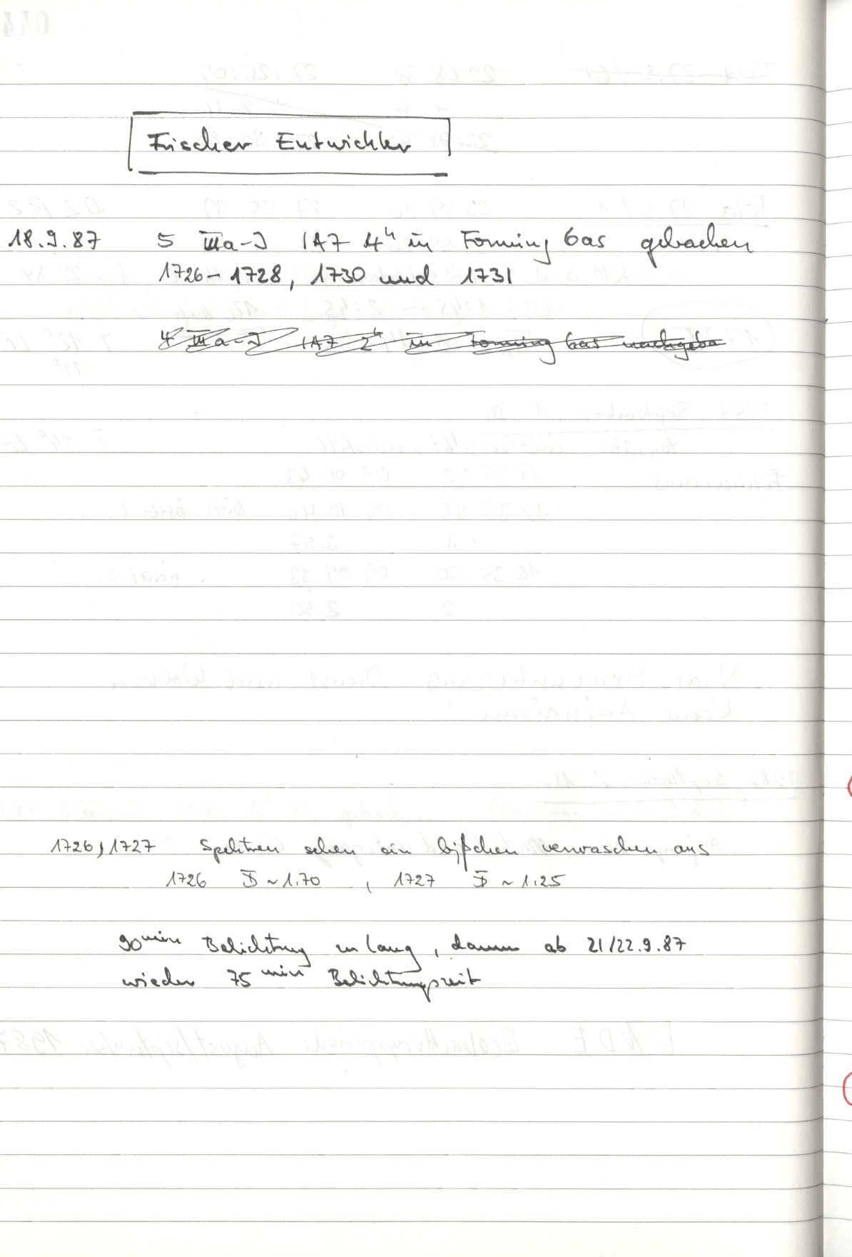 Zum Datum gehörende Seiten des Beobachtungsbuches