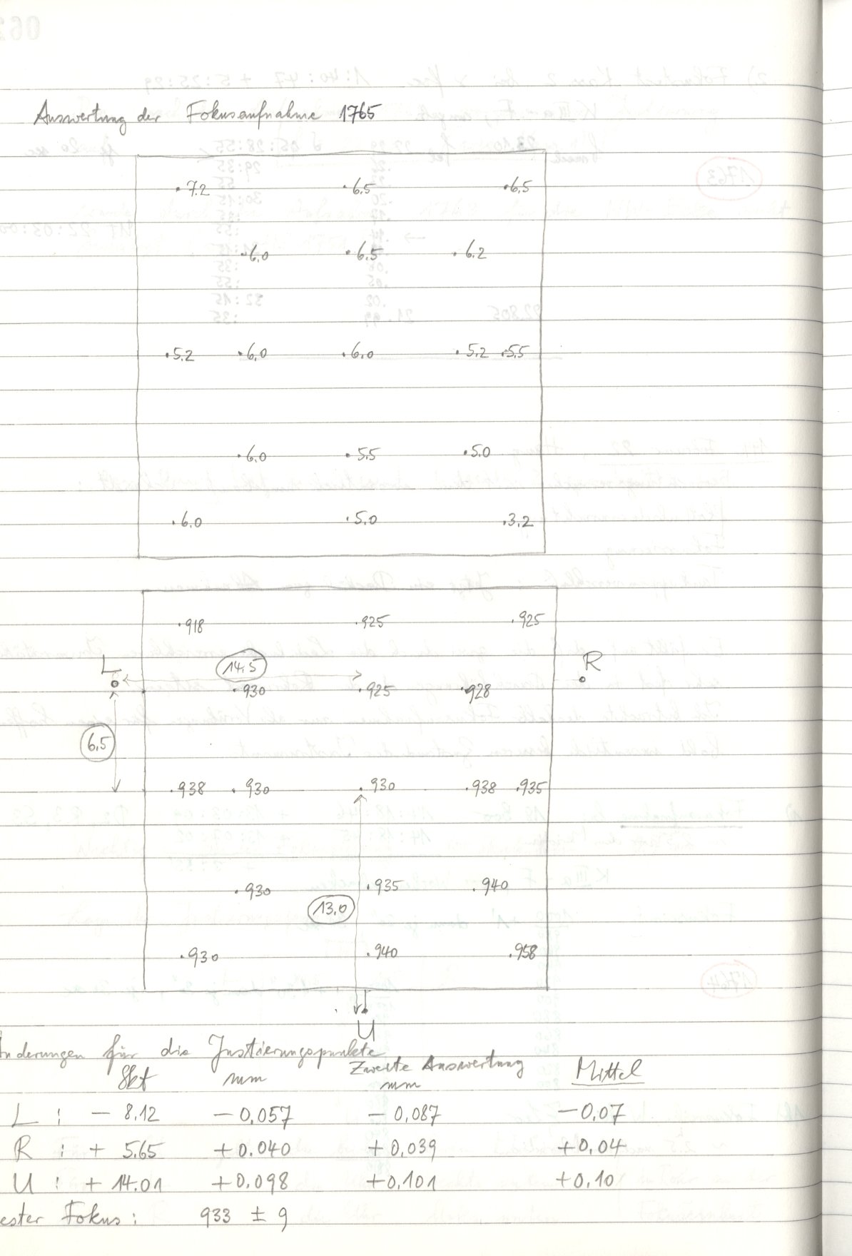 Zum Datum gehörende Seiten des Beobachtungsbuches
