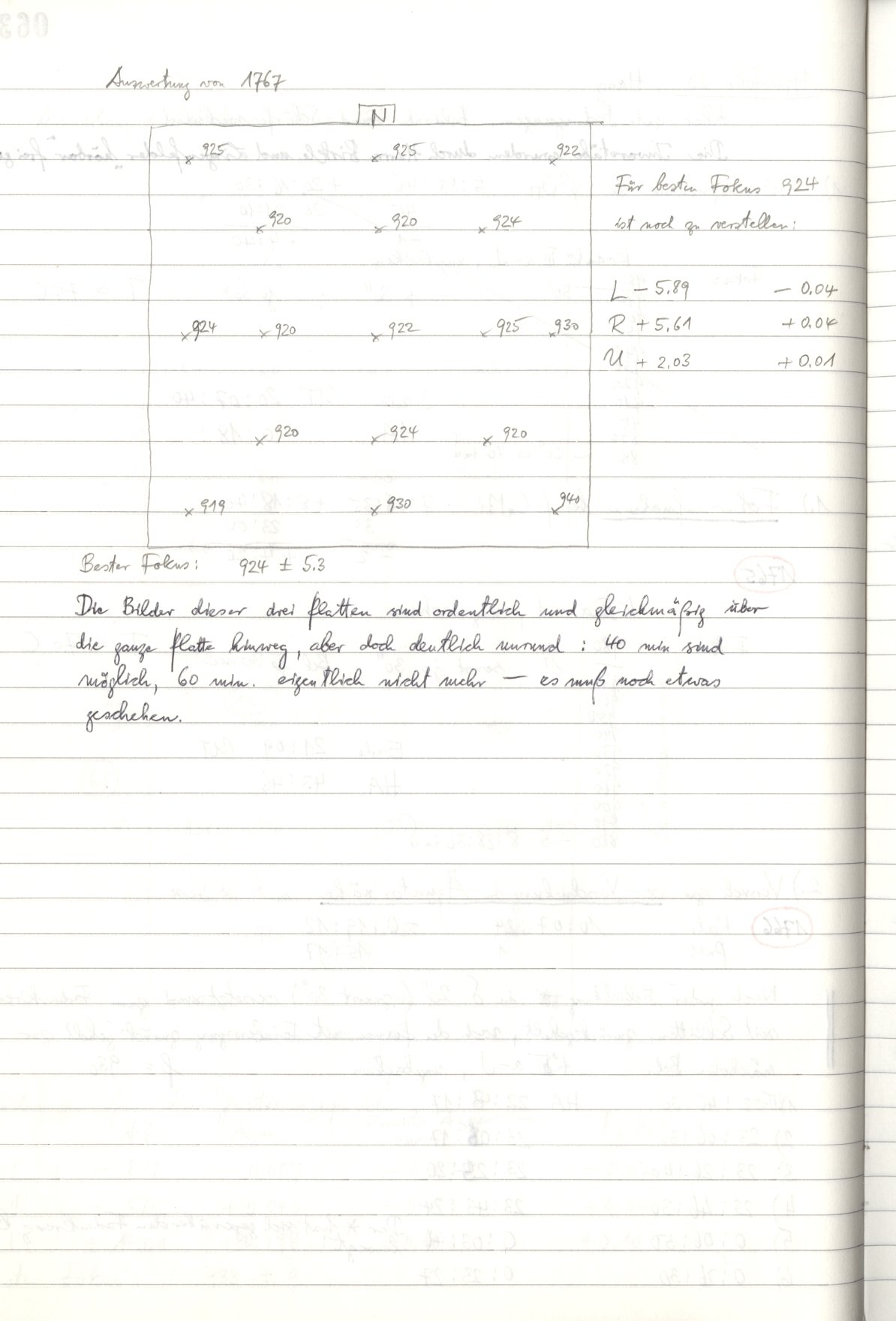 Zum Datum gehörende Seiten des Beobachtungsbuches