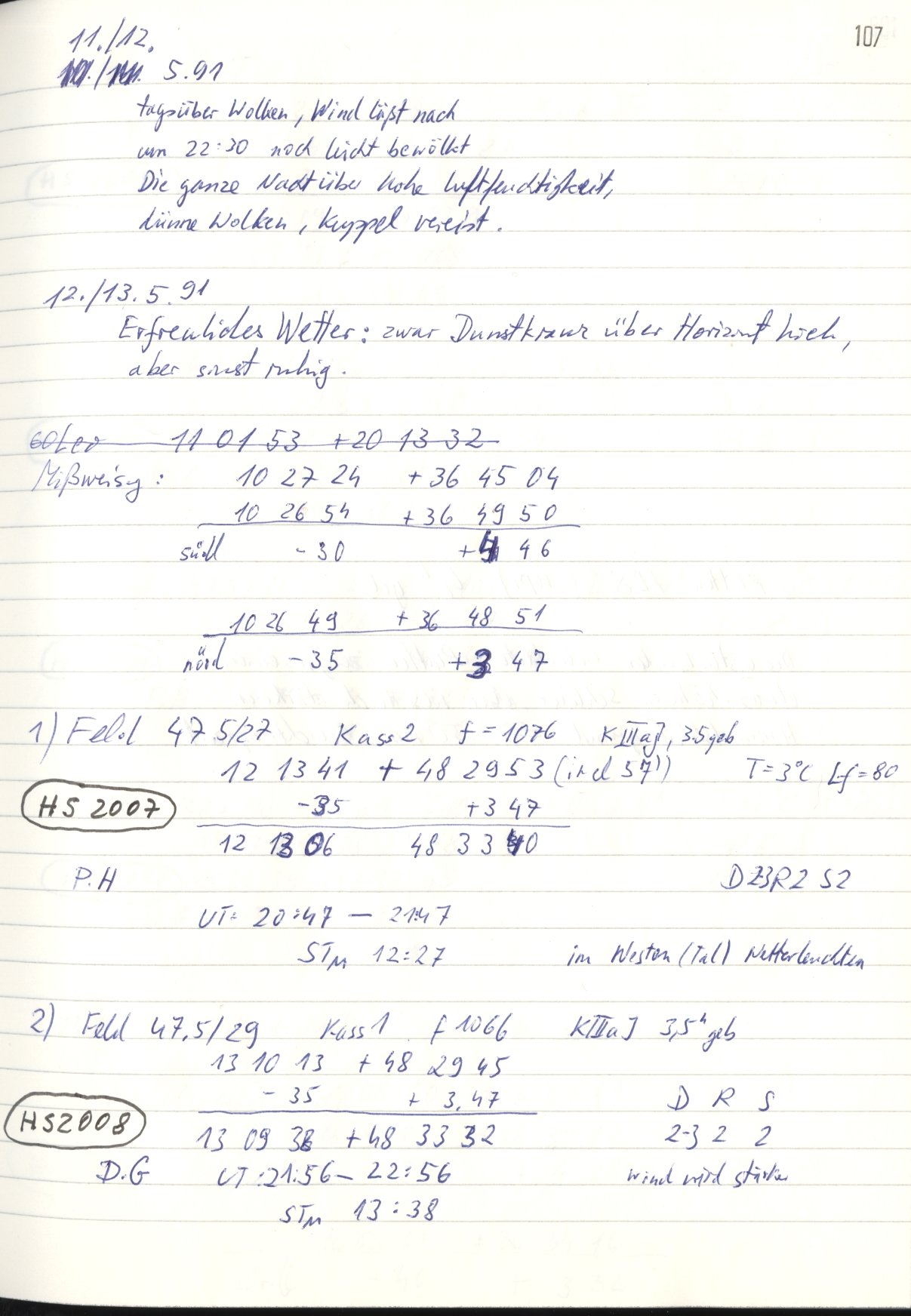 Zum Datum gehörende Seiten des Beobachtungsbuches