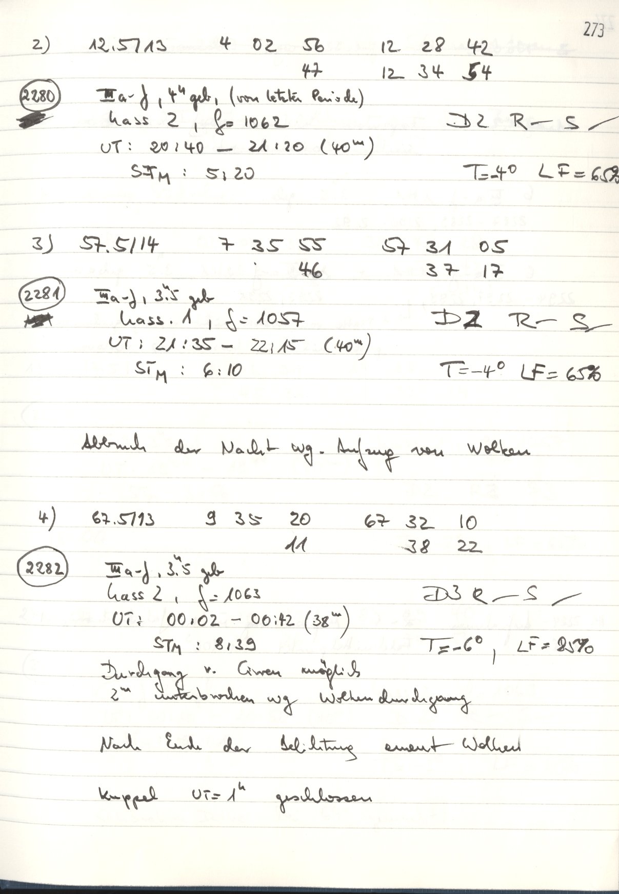 Zum Datum gehörende Seiten des Beobachtungsbuches