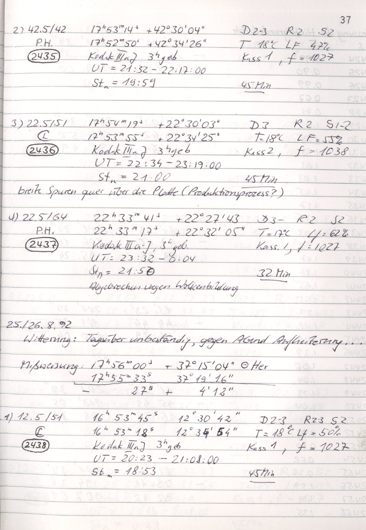 Zum Datum gehörende Seiten des Beobachtungsbuches