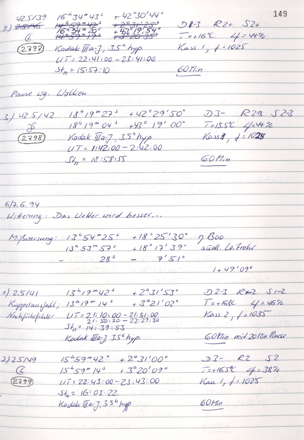 Zum Datum gehörende Seiten des Beobachtungsbuches