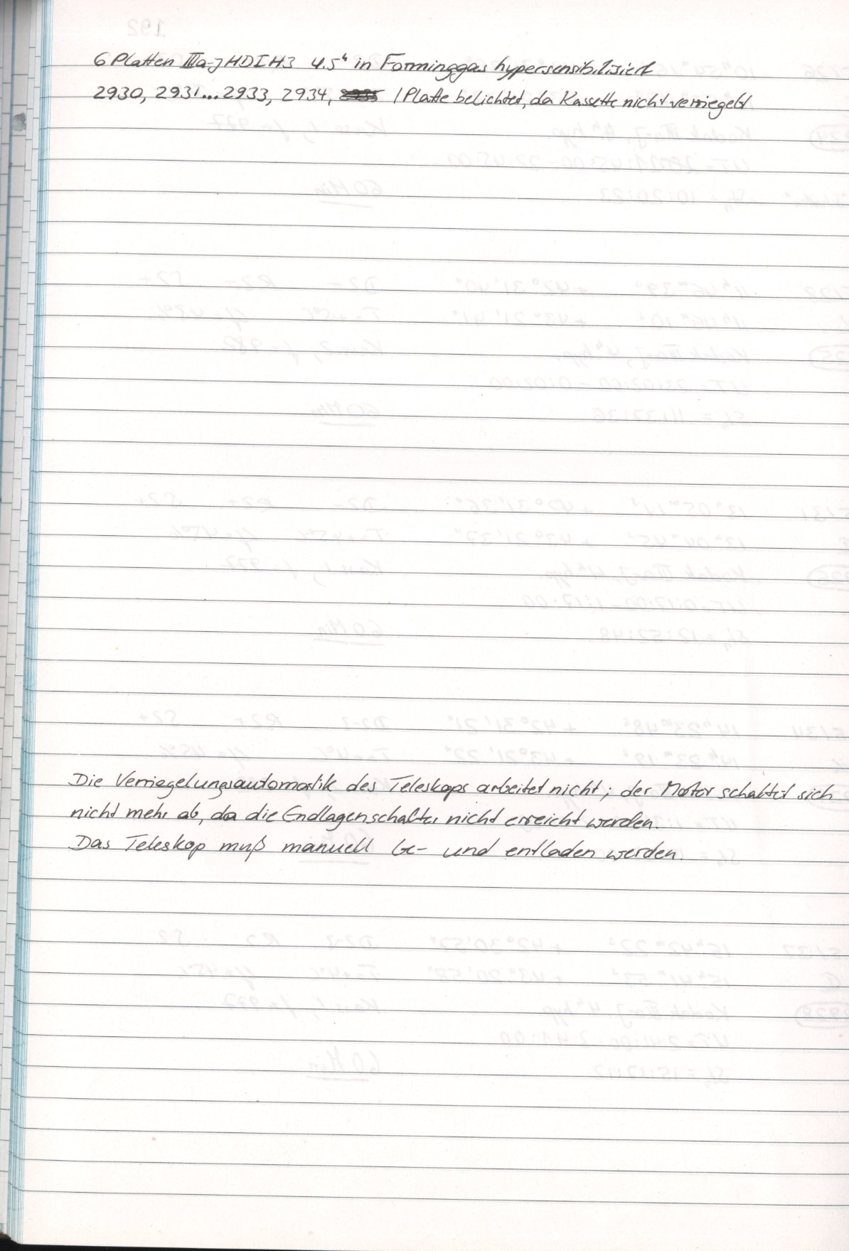 Zum Datum gehörende Seiten des Beobachtungsbuches