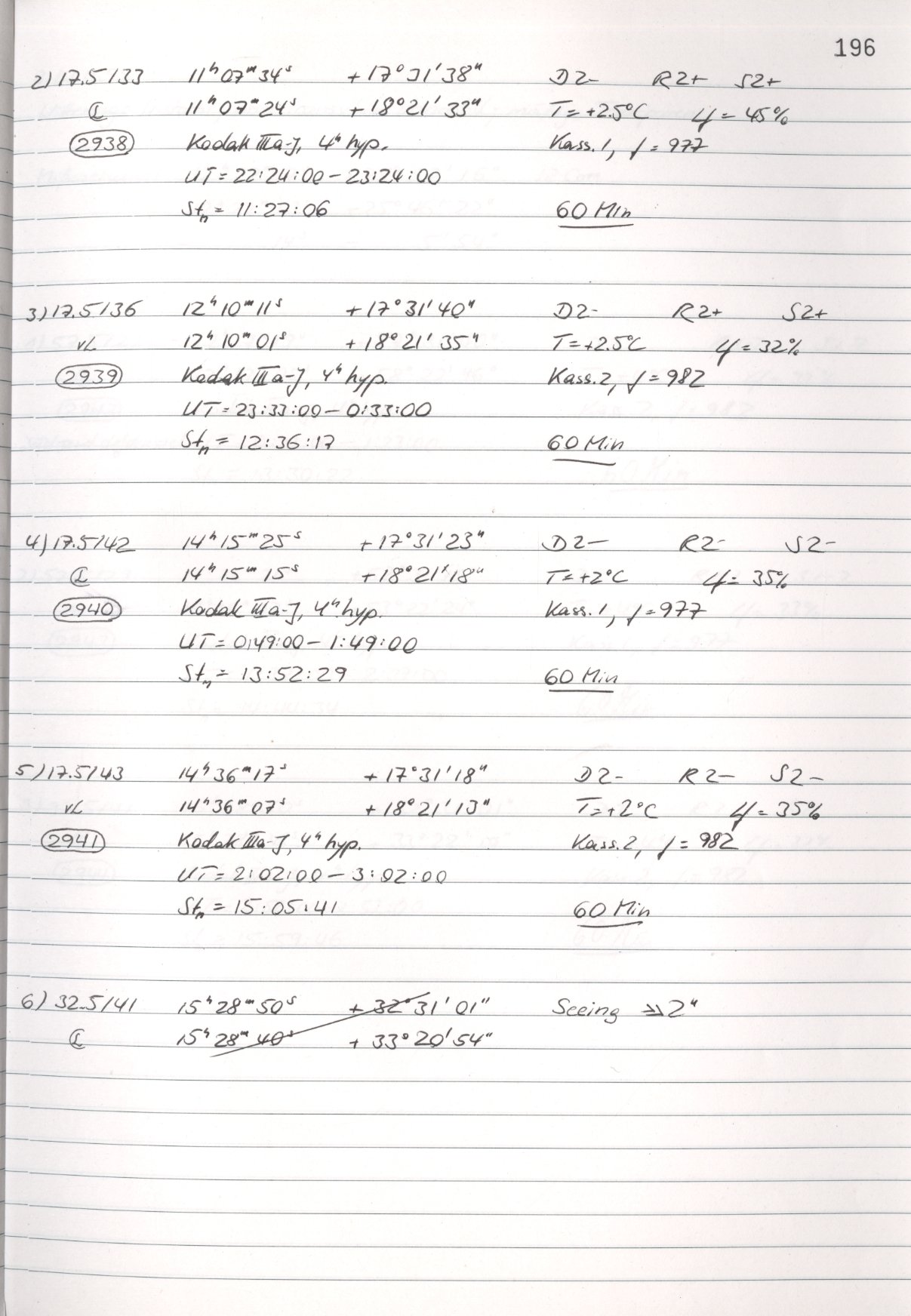 Zum Datum gehörende Seiten des Beobachtungsbuches