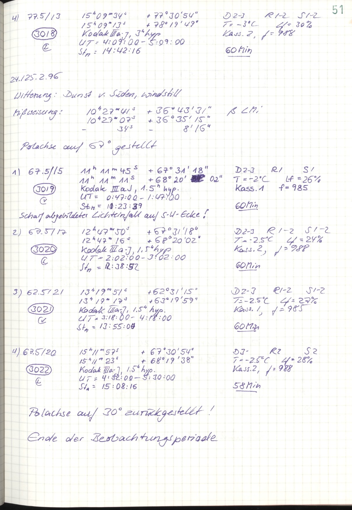 Norden = links, Osten = unten, falls nicht auf der Fotoplatte anders beschriftet