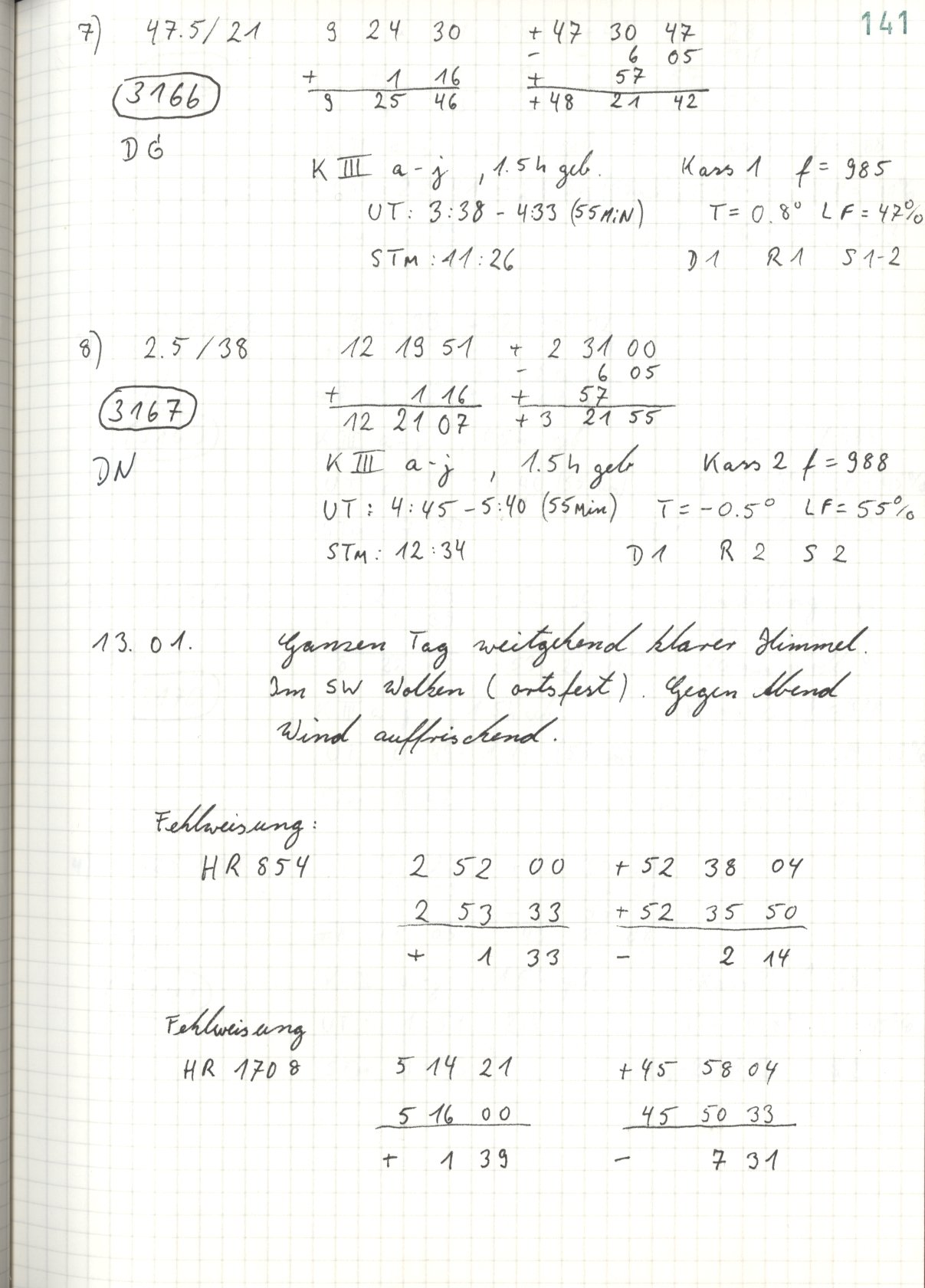 Zum Datum gehörende Seiten des Beobachtungsbuches