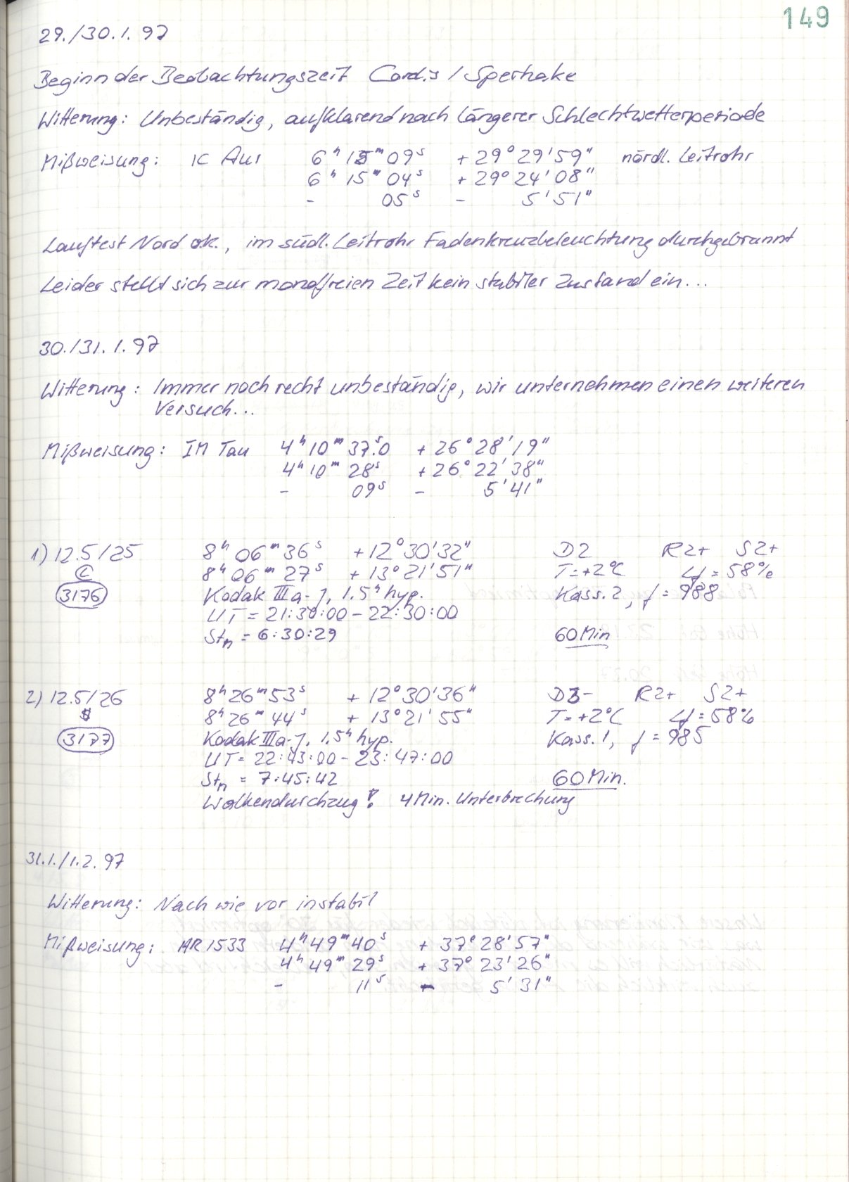 Zum Datum gehörende Seiten des Beobachtungsbuches