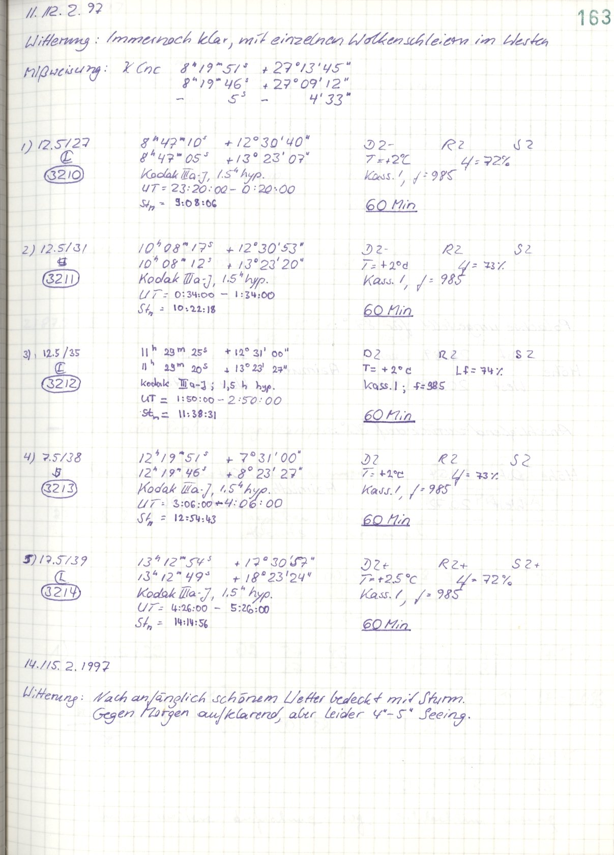 Zum Datum gehörende Seiten des Beobachtungsbuches