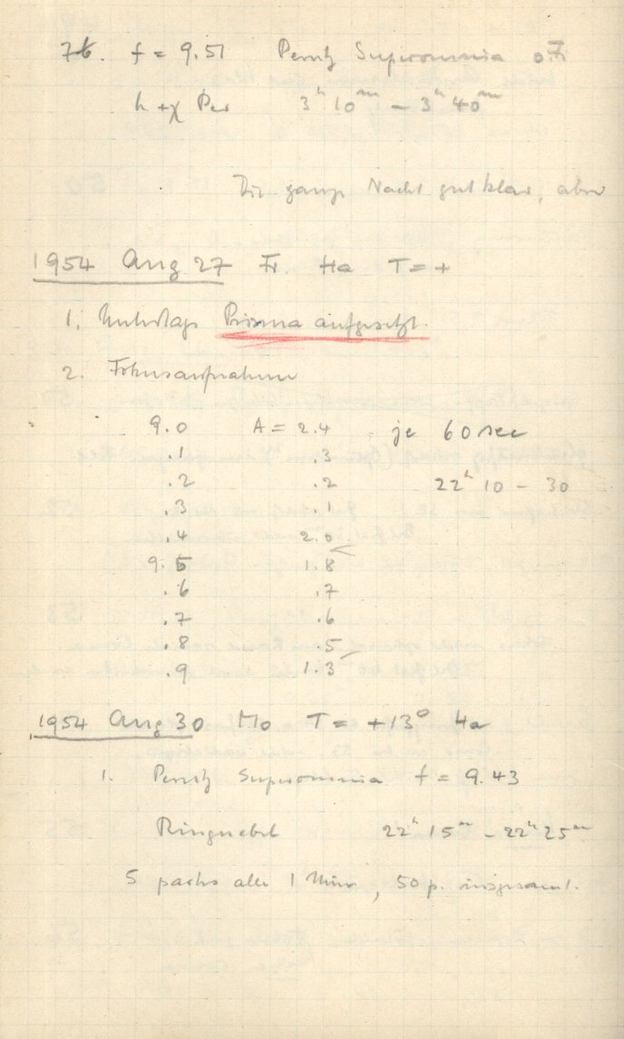 Zum Datum gehörende Seiten des Beobachtungsbuches