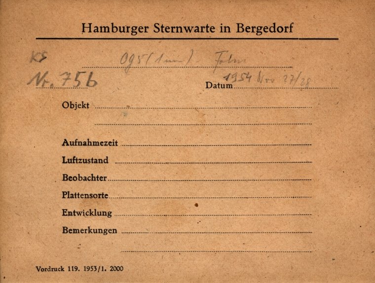 The material in this archive can be used for scientific purposes free of charge. Any other usage requires the written permission of the director of Hamburger Sternwarte.